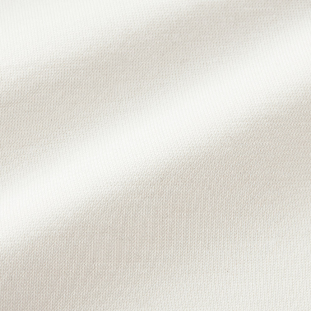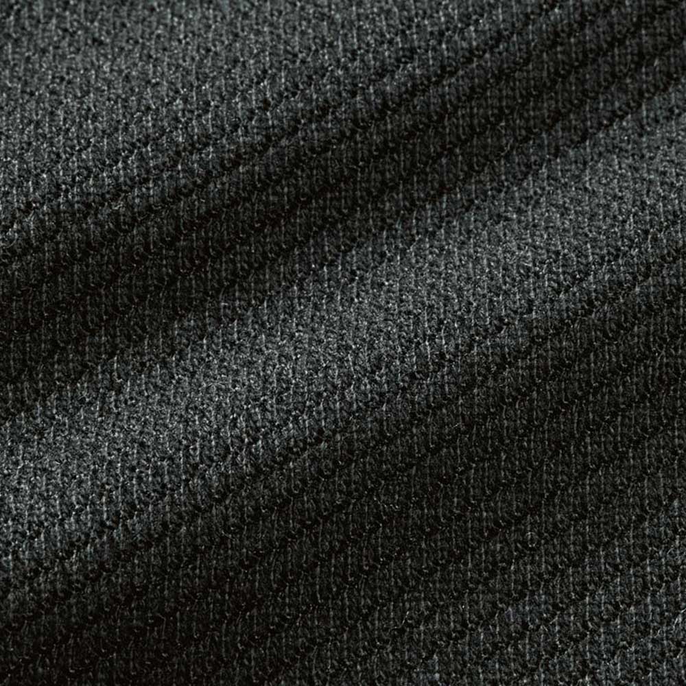 編みで表現したツイルの凹凸。身体のラインを拾いにくい適度な厚みと程よい光沢感が大人好みです。