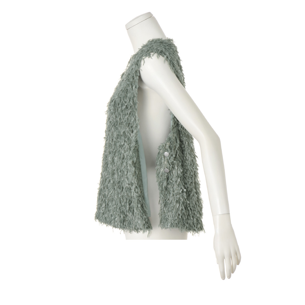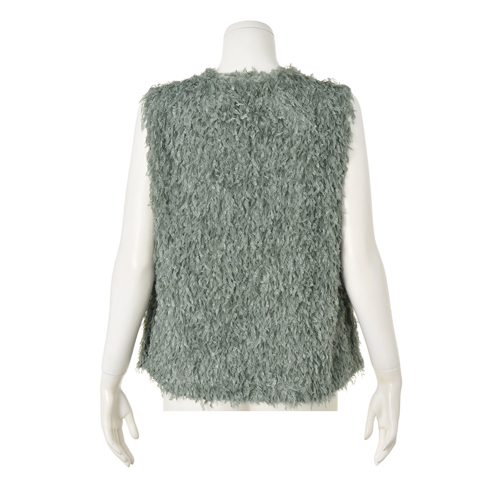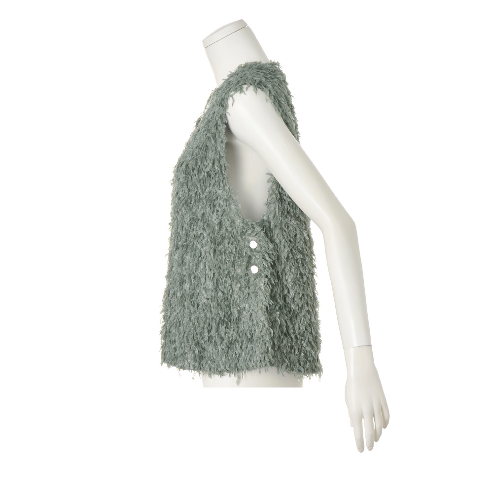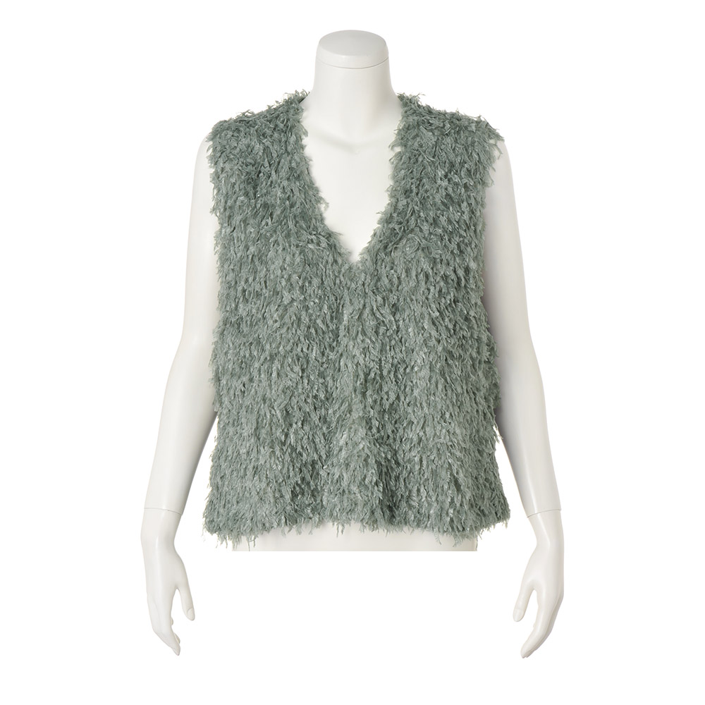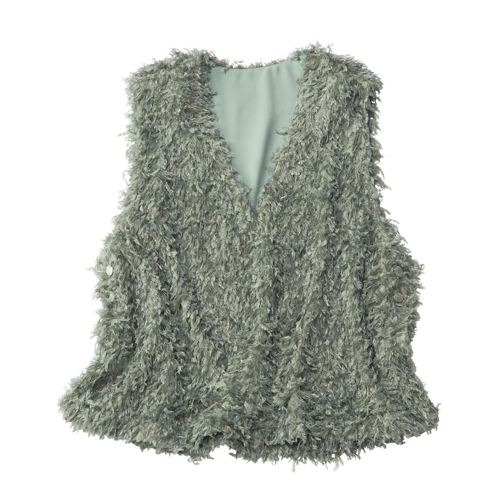 Feminine Chic“暖かさと優しさとフェミニンをまとう冬”モコモコだったり、ふっくらだったりして暖かい服は、女性をキュートに見せてくれるもの。今季はさらに「フェミニン」の要素を意識して、甘くて優しい冬を過ごしましょう。ボリューム感が可愛い体型カバーにも効くベストしなやかなテープヤーンで、ふわっふわ。このボリューム感がかえってボディを華奢に見せ、深いVネックが顔立ちをシャープに見せてくれるのです。クールなカラーと、少し光沢のあるボタンで留めた脇のベンツの抜け感でトレンドを表現。このベストをコーディネートに取り入れるだけで、今どきのお洒落な人になれること間違いなし。
