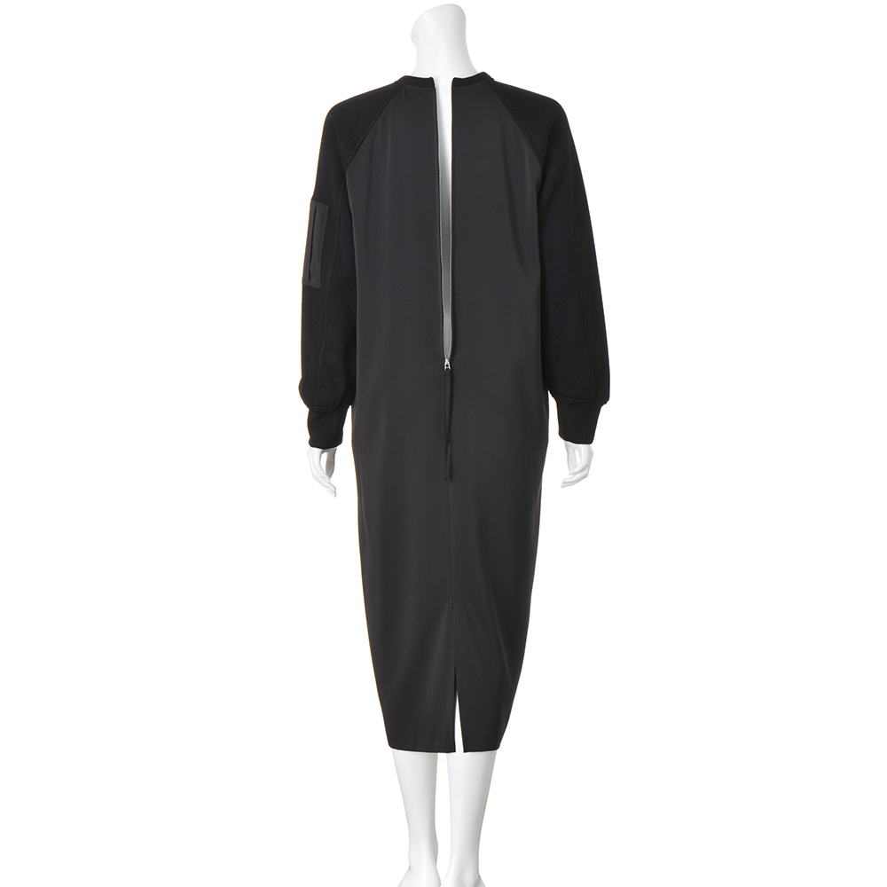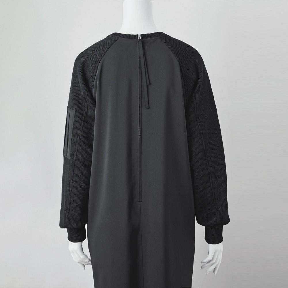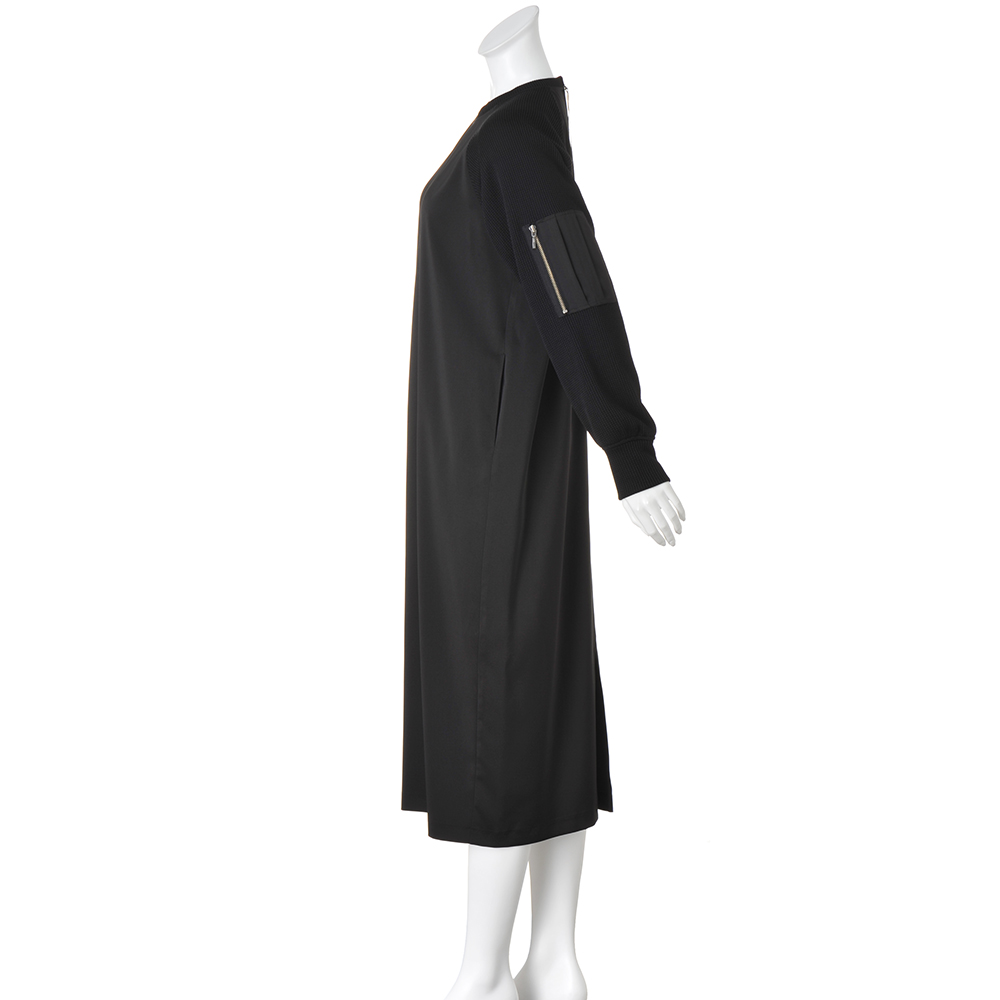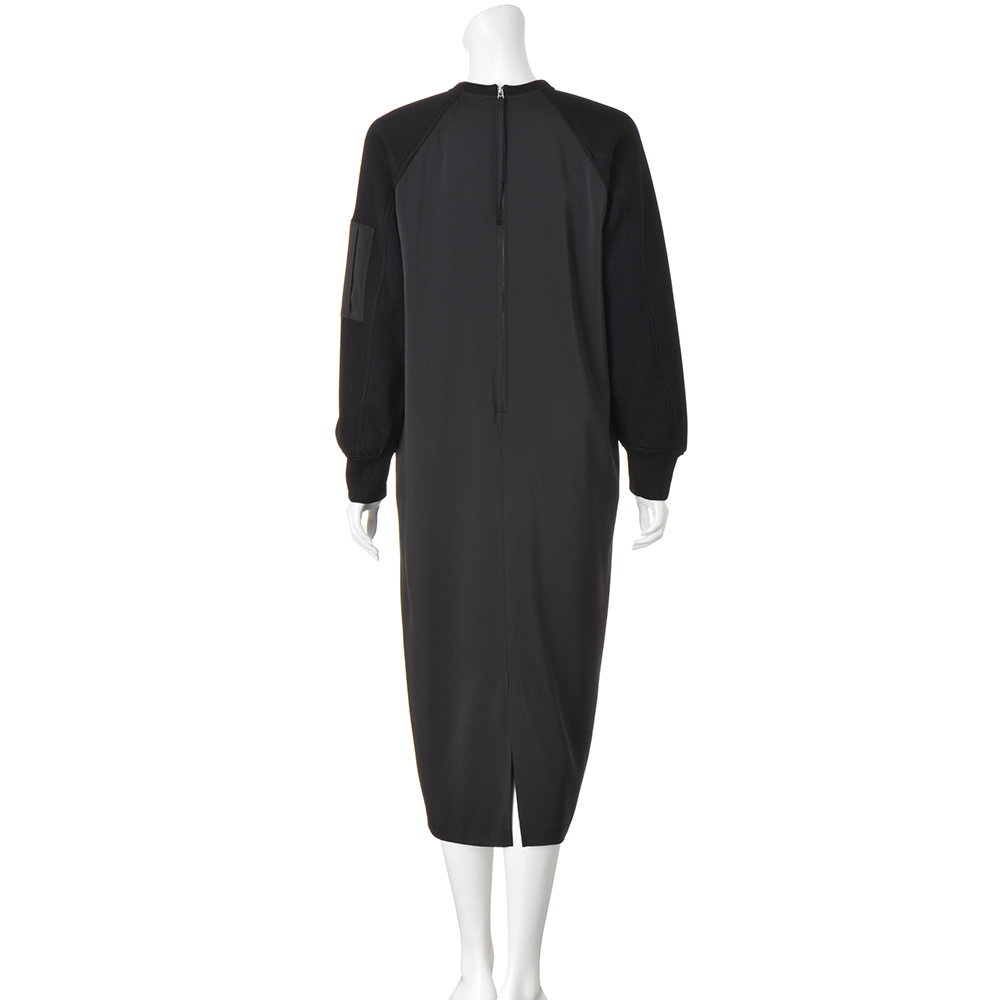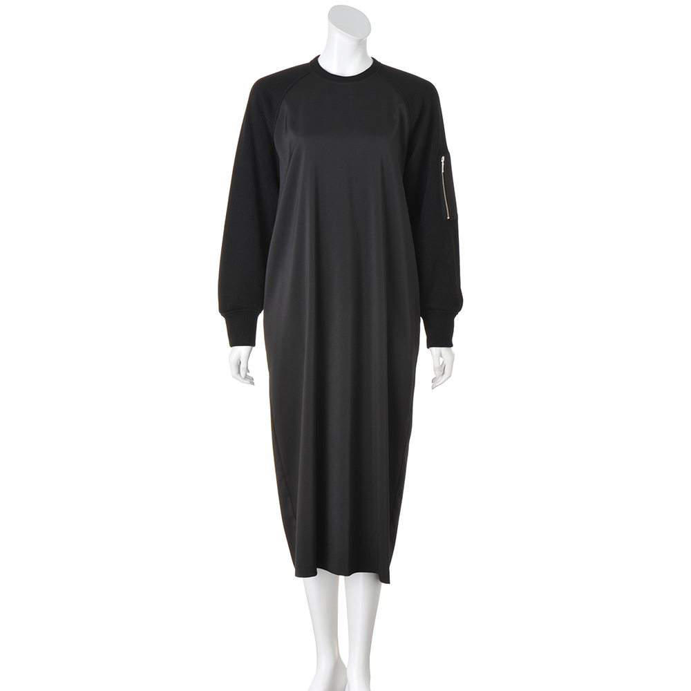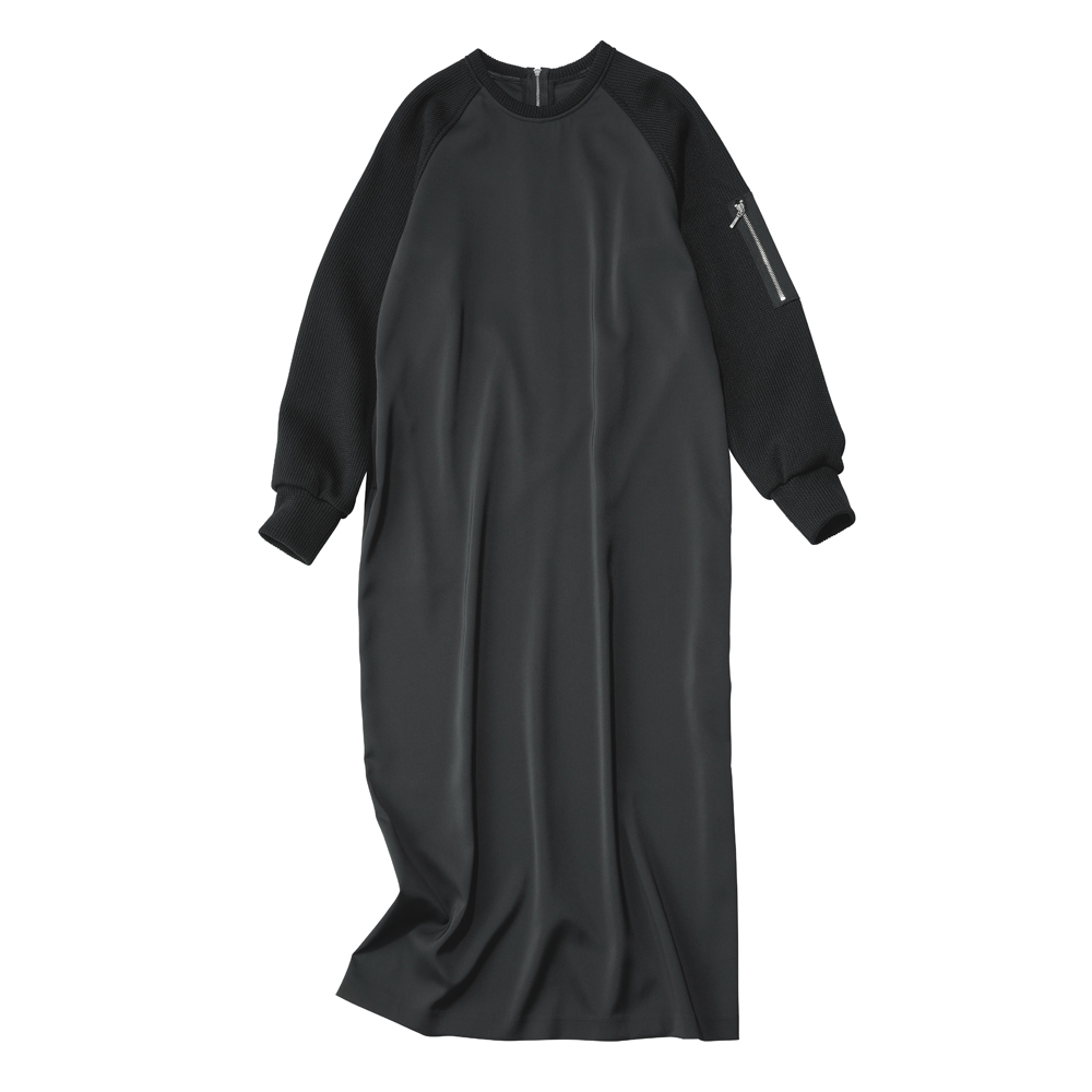 日常のお洒落に今どきのテイストをON街で着るのが似合う大人のヘルシーカジュアル毎日のスタイリングに欠かせない、程よくカジュアルで、どこかスポーティな旬の服。着映えはもちろん、親近感や好感度も手に入る、冬のマストハブをご用意しました。コントラストのある異素材使いがお洒落上級者の証一枚で装いが決まるラグランスリーブのワンピースは、袖にざっくりニットのような見た目のジャージー、身頃に布帛を使った異素材の組み合わせ。左袖のシガレットポケットが、洗練されたカジュアルムードを引き立てます。布帛部分は程よいツヤと落ち感があり、気になるボディラインを拾いにくく、後ろ裾のスリットで足捌きのよさも◎。合わせるアクセサリーや小物でイメージを変えたり、ジャケットやコートインはもちろん、インナーにタートルを重ねても。