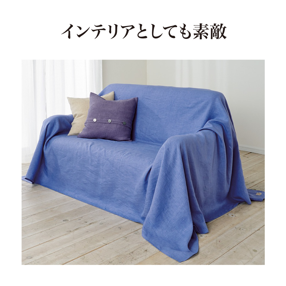 お昼寝やリラックスタイムのお供にも◎。夏素材のイメージがあるリネンですが、夏は涼しく、冬は適度な保温性のある素材。一年中気持ちよくお使いいただけます。