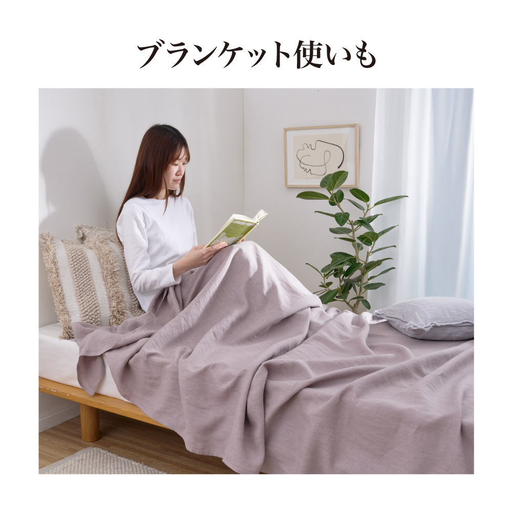 とびきりやさしい肌ざわりと美しい佇まいで、暮らし心地を底上げしてくれるリネン100%のフラットシーツ。マットレスや敷き布団にはもちろん、ソファカバーとしても活躍します。寝室でもリビングでも幅広く使えるリネンのフラットシーツ。(イ)グレイッシュパープル とびきりやさしい肌ざわりと美しい佇まいで、暮らし心地を底上げしてくれるリネン100%のフラットシーツ。マットレスや敷き布団にはもちろん、ソファカバーとしても活躍します。ピローケースと掛けカバーは軽さとやわらかさを出すため細番手の糸、ボックス&マルチシーツはやや太番手の糸で耐久性をアップするなど、アイテムごとに糸の番手を変えるこだわりぶり。国内工場独自の仕上げ技術により、柔軟剤を使わずソフトでなめらかな風合いに仕上げています。さらに使い込むほどやわらかく味わい深い表情に。美しいルックスと上質な肌ざわりのシーツは、ソファにさらりと掛けるなどリビング使いもおすすめです。フラットシーツとして和敷布団にもお使いいただけます。お昼寝やリラックスタイムのお供にも◎。夏素材のイメージがあるリネンですが、夏は涼しく、冬は適度な保温性のある素材。一年中気持ちよくお使いいただけます。同色で揃えても、異なる色を組み合わせても素敵なニュアンスカラー