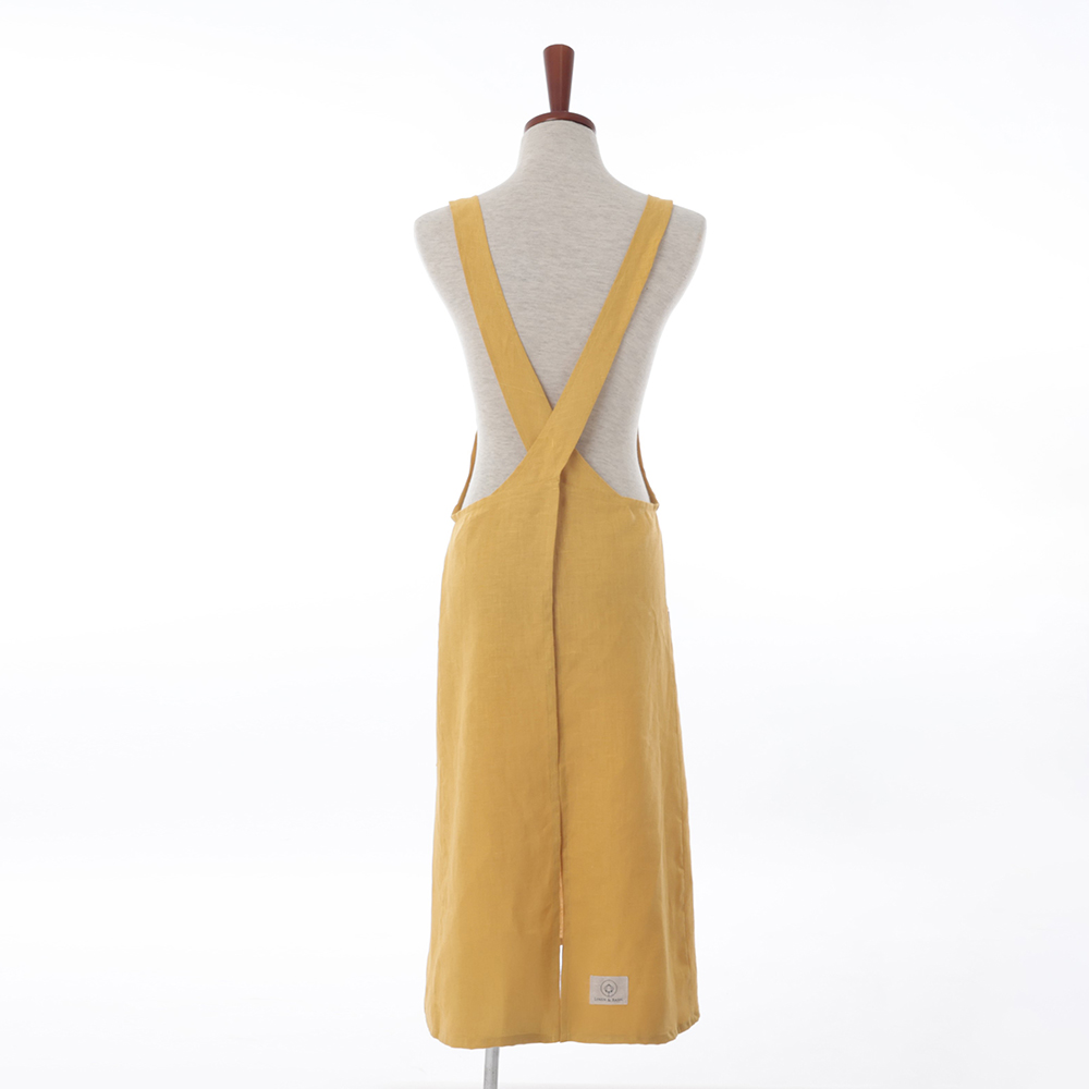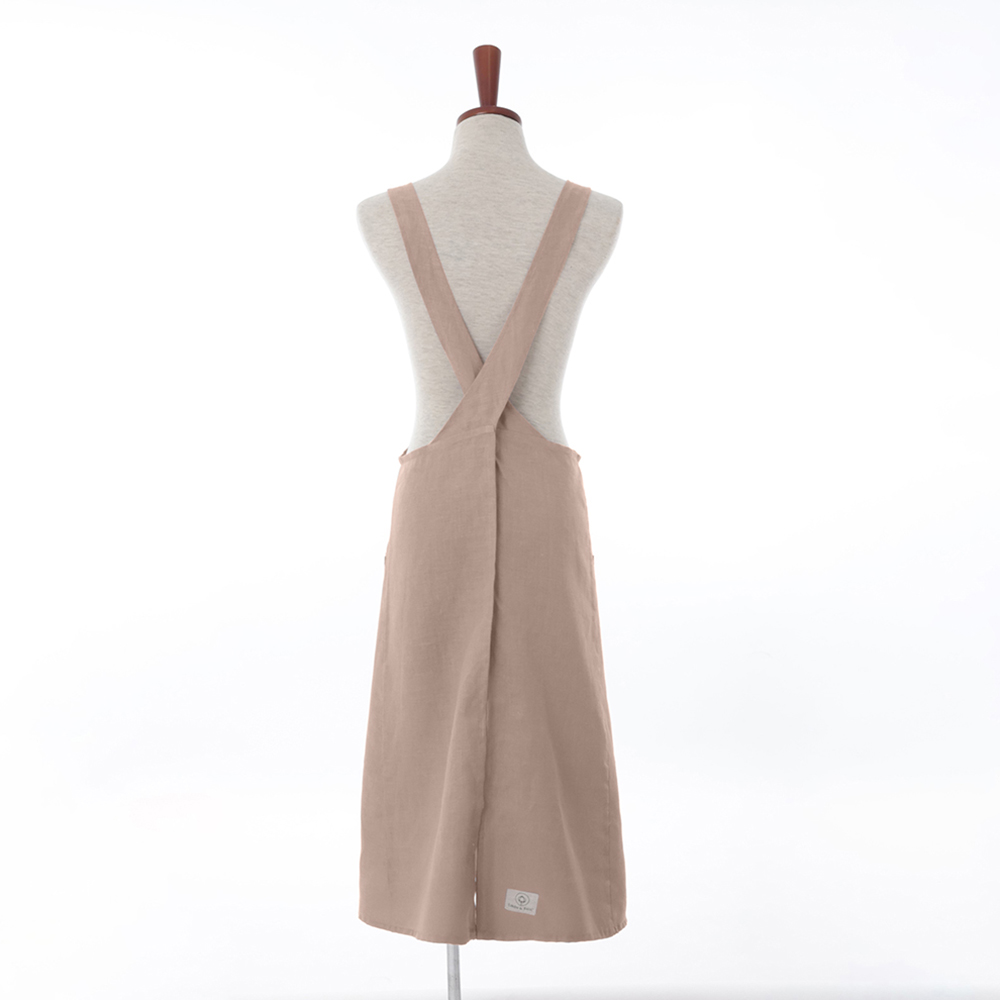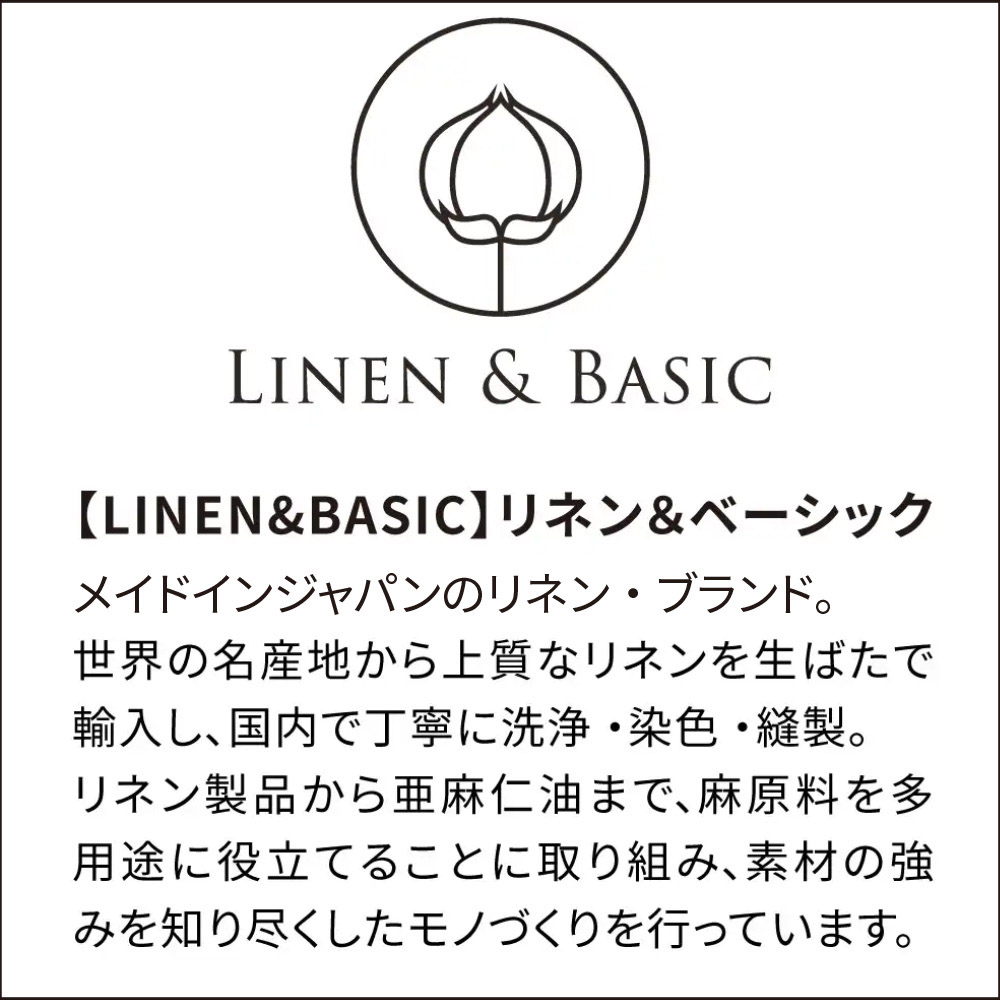 上からスポンとかぶるだけで着脱可能。紐を結んだりボタンで留めたりする必要がないからとてもラクに着られます!リネン素材は丈夫で気軽に洗えるので水回りの仕事にぴったりです。4色いずれも上品な色合いで気分が上がります。とにかく時短で家事をしたい、というお声から生まれた着脱が簡単なエプロンです。とても動きやすく、首回りの負担を軽減するなど、心地よくお使いいただけるようにこだわった工夫がたくさん。エプロンに適した中厚時のリネン100%生地を使用。使うほどに柔らかくなっていくリネンの風合もお楽しみください。●特有の光沢感も美しく、使うほど柔らかい風合いに変化するのもリネンの魅力です。使い始めのハリのある上品なイメージも良いものですし、使い込んでくたっとしたリネンは上品さに愛着を纏ってますます素敵な印象にランクアップします。●とにかく脱ぎ着が簡単です。紐を結んだり止めたりが不要。首にかけて腕を通すだけ。さっとかぶってすぐに作業ができるエプロンです。紐を結ばなくても体をやさしく包むように工夫されたオリジナルパターンで、作業の邪魔になることがありません。●肩紐がずれないようデザイン。首・肩にもやさしい。作業中に肩紐がずれるのって地味にストレスですよね。こちらのエプロンは肩から腰までのラインを工夫することで肩紐のずれを解消しています!また、肩紐がやや幅広なので首・肩へ負担がかかりにくいのもうれしいポイントです。●全体的にスッキリとしたキレイなフォルム。ゆるやかに裾広がりのデザインとスマートなシルエットが特徴で、スッキリとした印象に。両サイドに深めのポケットがついているのも便利ですよ。●リネンの風合を生かした日本製。リネンの優しい質感や美しい表情をを生かすように、国内で染色・加工した生地を使用しています。【LINEN & BASIC】リネン&ベーシック注目のリネンブランド「LINEN & BASIC」 世界の名産地から上質な生ばたで輸入し、日本の技術で丁寧に洗浄・染色・縫製。こだわりのリネン製品から亜麻仁油まで、麻原料を多用途に役立てることに国内で取り組み、素材を知り尽くしたものづくりを行っています。