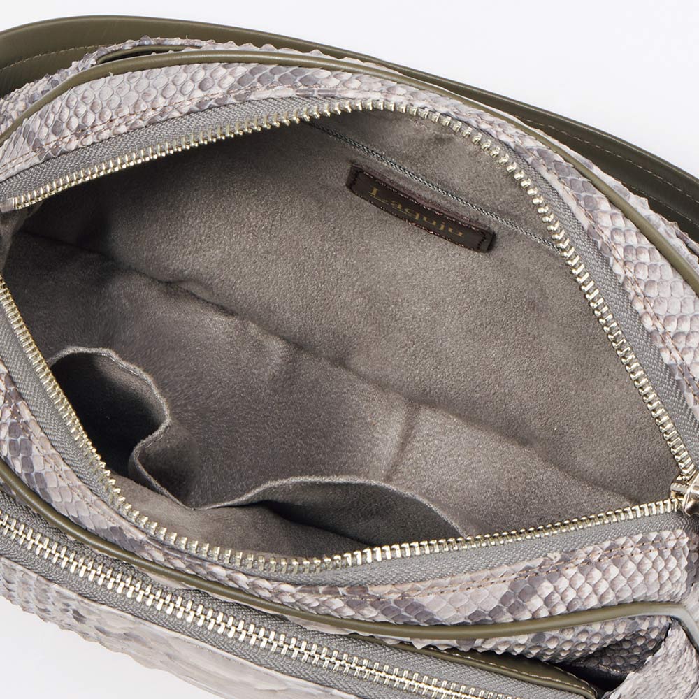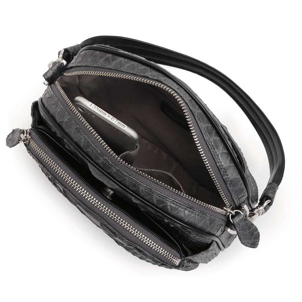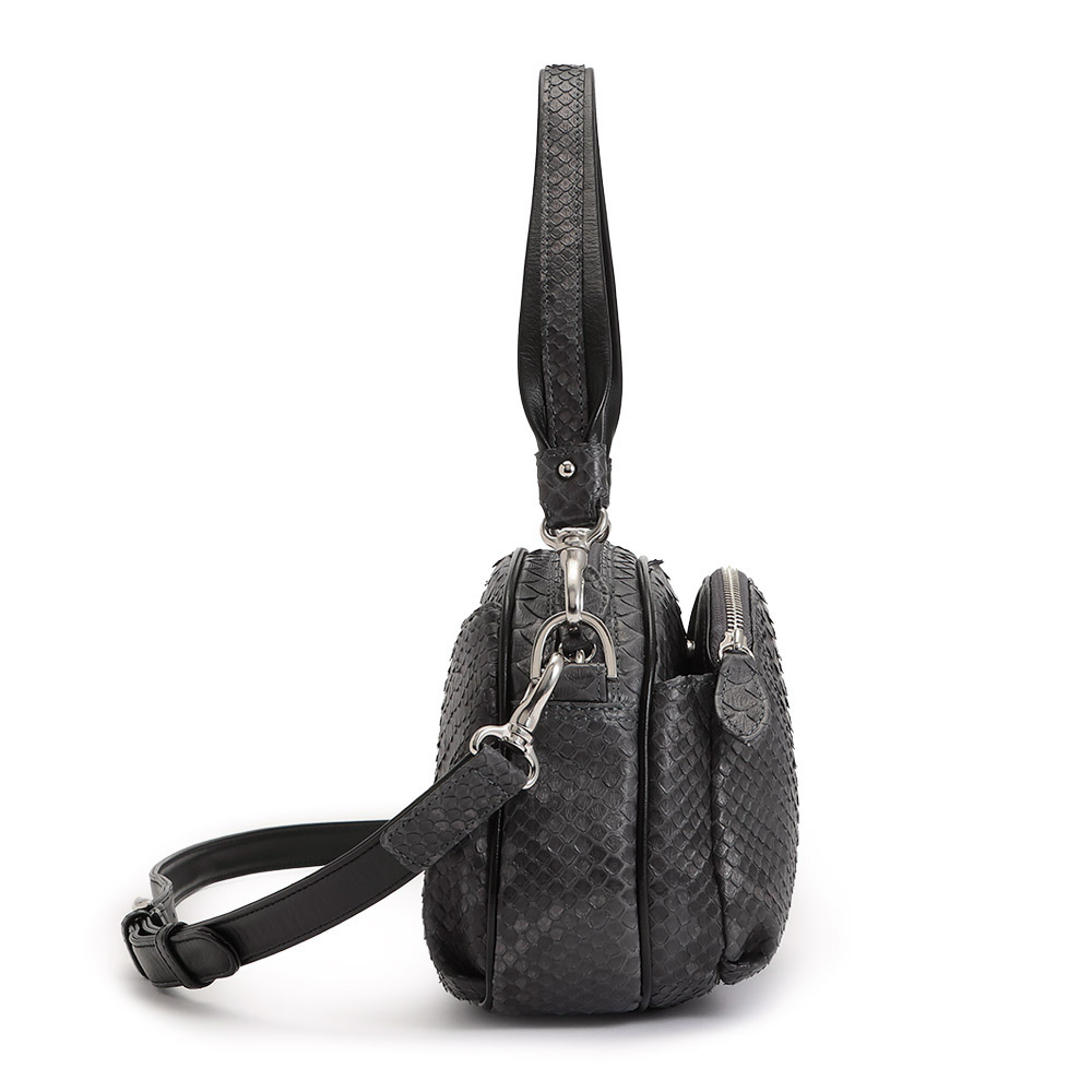 Casual item大人の日々を彩る上質感という拘り、さりげない豊かさを。比類なき美しさを贅沢なセンター取りで軽やかに端正で優美な鱗模様が魅力のダイヤモンドパイソン革を、前後ともセンター取りにした贅沢なバッグ。ソフトな革を熟練の職人による縫製で、丸やかなフォルムに。豊富なポケットとストラップで機能も充実です。