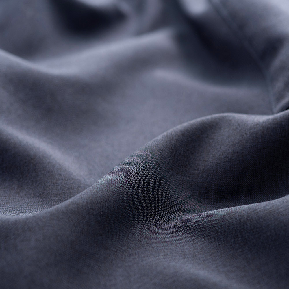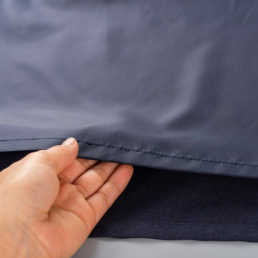 シワになりにくく、ハリがあるのに優しい風合いのカチオン生地を使用。(ア)ネイビー