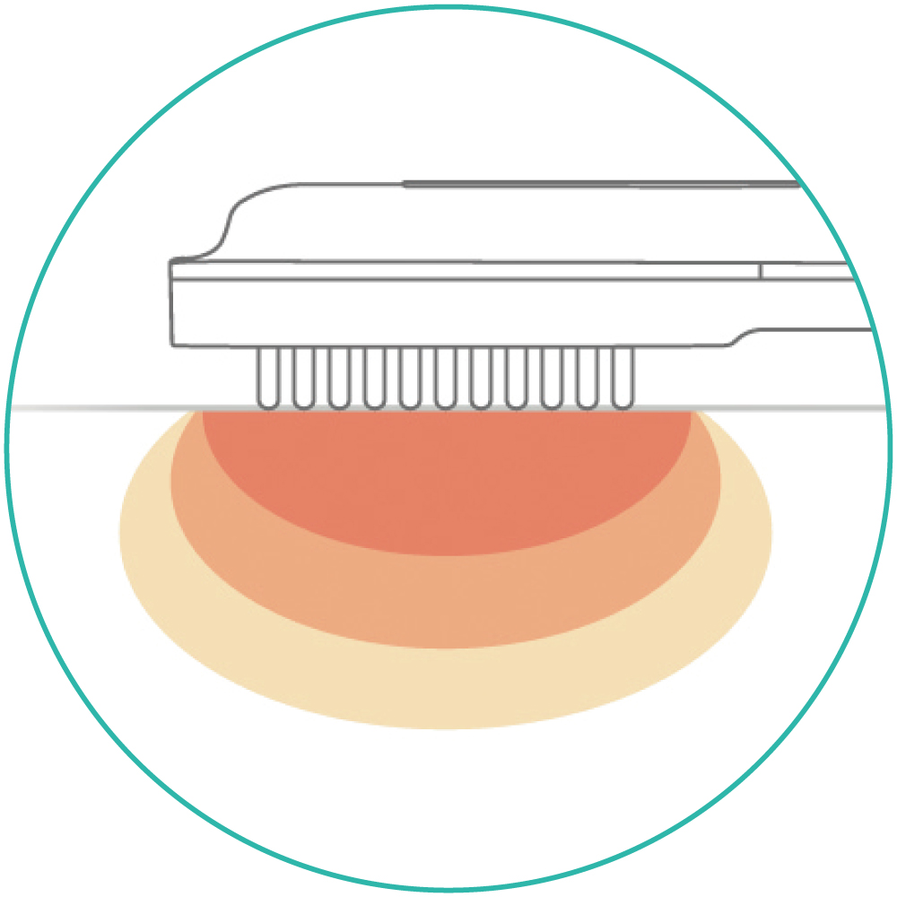 RF 高周波 肌表面の水分に反応させて、肌をじんわり温めます。