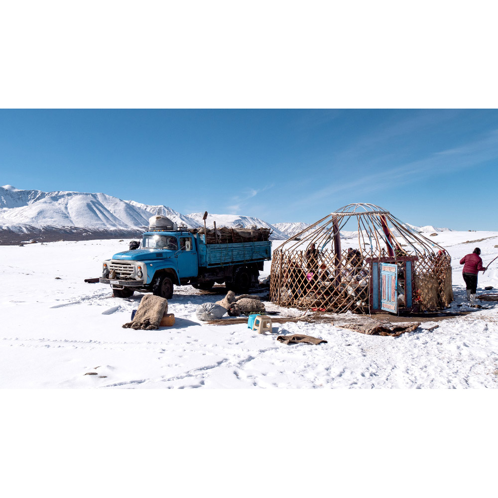 • 広い草原で遊牧民が飼育しており、羊の毛をホワイト・アイボリー・ブラウン・ダークブラウン・ブラックの5色に分類します。染料を使わず天然の色のまま使用するので、本物の天然素材と言えます。