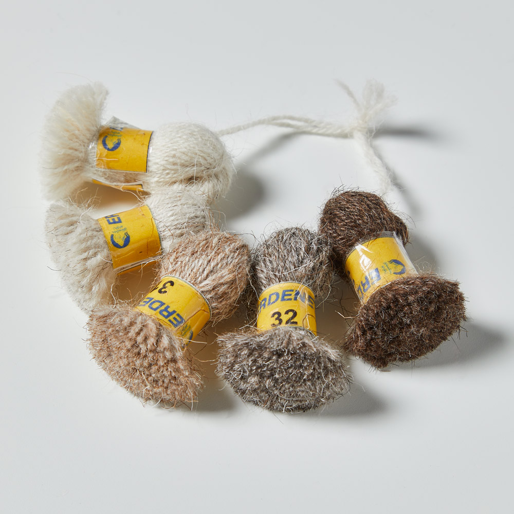 • 染色や強い薬品を使わず、羊の毛の色を生かした環境にも優しい天然糸を使用。
