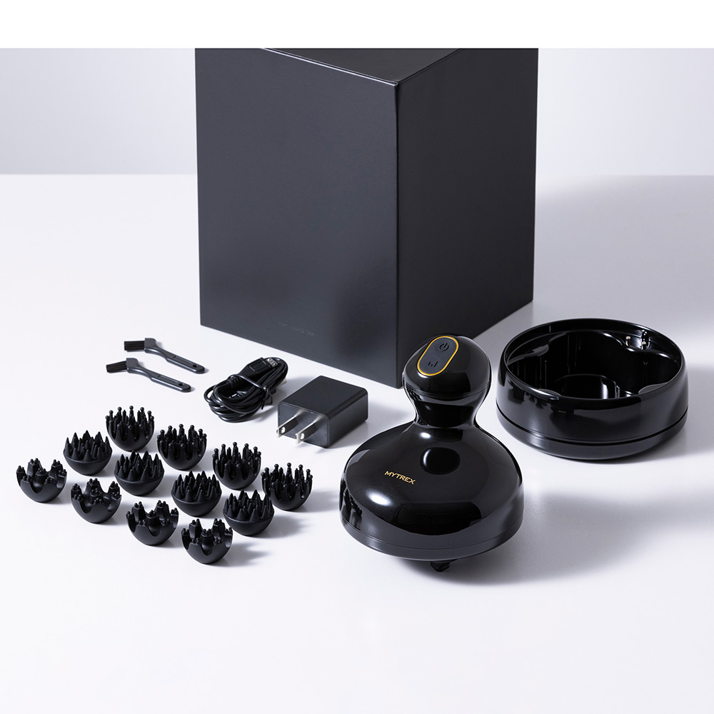 すっきりフェイスを目指すなら頭皮から顔、ボディまでマルチに美しくリフトケア(*1)!すっきりフェイスを目指すなら…顔と頭皮はひとつづき。すっきりフェイスを目指したいなら頭皮からのケアがおすすめ。お風呂で使える防水仕様シャンプーしながら気持ち良いEMS刺激とつまみ感を追求したニードルブラシで頭皮をアプローチ。手洗いでは落としきれない汚れを落とし、硬くなった頭皮を気持ちよく刺激します。頭皮だけでなく、フェイス・ボディケアもOK3種類のアタッチメントを自由に付け替えてフェイス・ボディのもたつきにもアプローチ。【頭皮専用】肌への接地面を小さくすることで「点」で頭皮を刺激。頭皮が硬くなった方におすすめです。【頭皮&ボディ用】手のような感覚で心地よくつまみ上げながら、普段のケアでは落としにくい汚れも除去。【フェイス用】突起の数と角度にこだわった設計で、肌に密着する面積を広く確保しEMSの効率をアップ。3つの機能でリフトケア(*1)★EMS:ピリピリ感を軽減するように開発された独自のNNRパルス技術。筋肉をギュッと収縮させるような体感で心地よく刺激します。★回転:1台で6つのテクニックを再現「揉む」「つまむ」「引っ張る」「押す」「開く」「閉める」★赤色LED:エステでも使用される赤色LEDを搭載回転速度:3モードEMSレベル:1~5レベル【こんな人におすすめ】EMS搭載の電動スカルプブラシ、MYTREX EMSヘッドスパプロはこんな方におすすめ。・頭皮の汚れ・臭いが気になる・顔まわりのもたつきが気になる・頭皮の硬さが気になる・お風呂時間に効率的にケアしたい【バイヤーコメント】防水仕様だからお風呂でガシガシ使用できるのが嬉しい!シャンプー時に使用してスッキリ、顔と体の気になるところをEMSでアプローチ、お風呂時間に頭~体まで1台で効率よくケアしています♪ (*1)機器を上に向かって動かすこと。