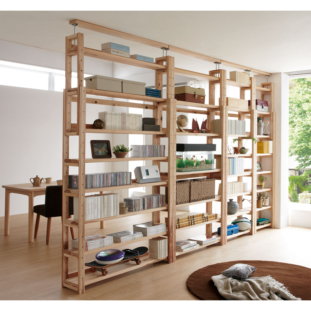 【国産杉無垢】【頑丈】【日本製(国産)】播磨・兵庫県宍粟市の製材所で2週間以上かけて仕上げる「杉無垢」をふんだんに使用。長年使い続けても安心の、確かな耐久性を備えています。天然の節目を生かした自然のままの木肌は、永く使うほどに風合いが深まる愉しみを味わえ、まるで木に包まれるような心地よさを味わえる壁面ラックです。お子様がいらっしゃるご家庭にもおすすめです。【POINT 1】播磨の製材所で仕上げる杉無垢をふんだんに使用。〜品質・強度にこだわった製材ライン〜●播磨・兵庫県宍粟市の木材センターで仕上げる杉無垢を贅沢に使用。●この製材所は、主に建築材を生産しています。●木材の含水率の測定や打撃による強度計測などを最新機器で徹底管理。●建材と同じレベルで2週間以上かけ丁寧に製材し、●最後は一つ一つ手で触れ目で見て、しっかりと最終品質チェックを行います。●確かな技術で仕上げる杉を使用した、永くお使い頂ける頑丈本棚ラックです。〜日本の森を守るために〜●輸入材が増えて国内の放棄森林が増加。●その中で、兵庫木材センターは日本の森を守るための取組をスタート。●生産から供給までの一貫体制で、積極的に日本の森を活用。●そうして森を循環させることで、荒廃する森林の再生を目指します。【POINT 2】棚板1枚当たりの耐荷重「約50kg」の頑丈さ。●しっかり目の詰まった木質による丈夫さで、建材にも使われる国産杉。●棚板は3cmと厚みたっぷりで頑丈。重い本を大量収納できるブックシェルフです。●テレビを置いて、シアター壁面収納にしたり、オーディオやプリンターを置いたり、幅広い用途でお使い頂けます【POINT 3】日々使うものだから、こまやかな機能にもこだわりました。●天井と面で突っ張ってしっかり安定。オープンなので圧迫感もありません。●低い天井・梁下183cmから高い天井272cmまで対応。●棚板は穴に合わせて9cmピッチで可動できます。●背板がないので、コンセントやスイッチをいかせます。●コーナー部分に丸みを持たせて、手触りもなめらかに。●ホルムアルデヒド含有量が最も少ないF☆☆☆☆接着剤を使用しているのでお子様がいても安心。●間仕切りラックとしてもお使い頂けます。オフィス、書斎、リビングやキッズルームをナチュラルで心地よい空間に。●お気に入りのアイテムを飾って、木製コレクションシェルフとしても◎●頑丈なので、テレビ台、プリンター台としても有効活用でき便利です。●薄型スリムタイプは、廊下や寝室、玄関など省スペースでお使い頂くのもおすすめの書棚です。【ウッドデザイン賞2024受賞】ウッドデザイン賞は木の良さや価値を再発見させる製品や取組について特に優れたものを消費者目線で評価し表彰する顕彰制度です。ライフスタイルデザイン部門に入賞。