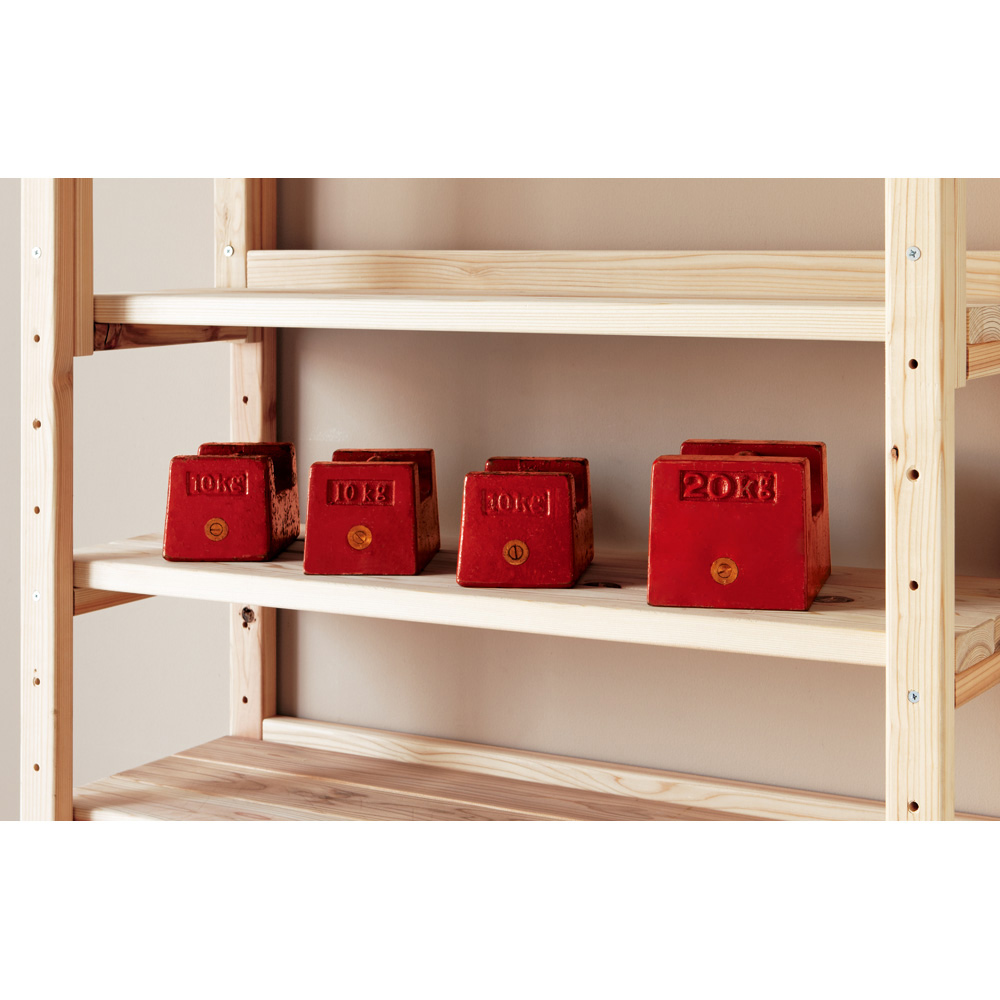 棚板1枚当たりの耐荷重「約50kg」! 特徴は厚みたっぷりの棚板。厚さが3cmあり、重い本などをぎっしりと大量に収納でき、長く使ってもたわみにくい頑丈さです。第三者機関にて耐荷重試験も実施しました。(写真はイメージです。)