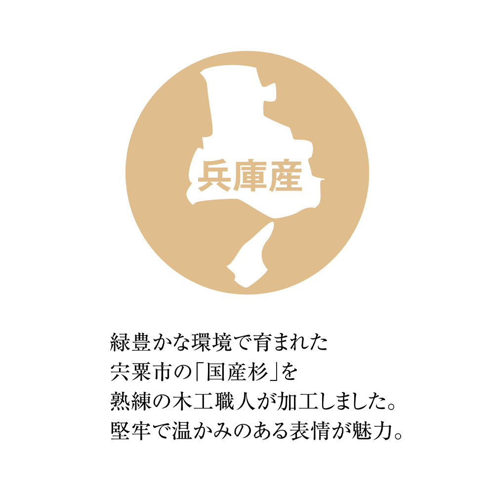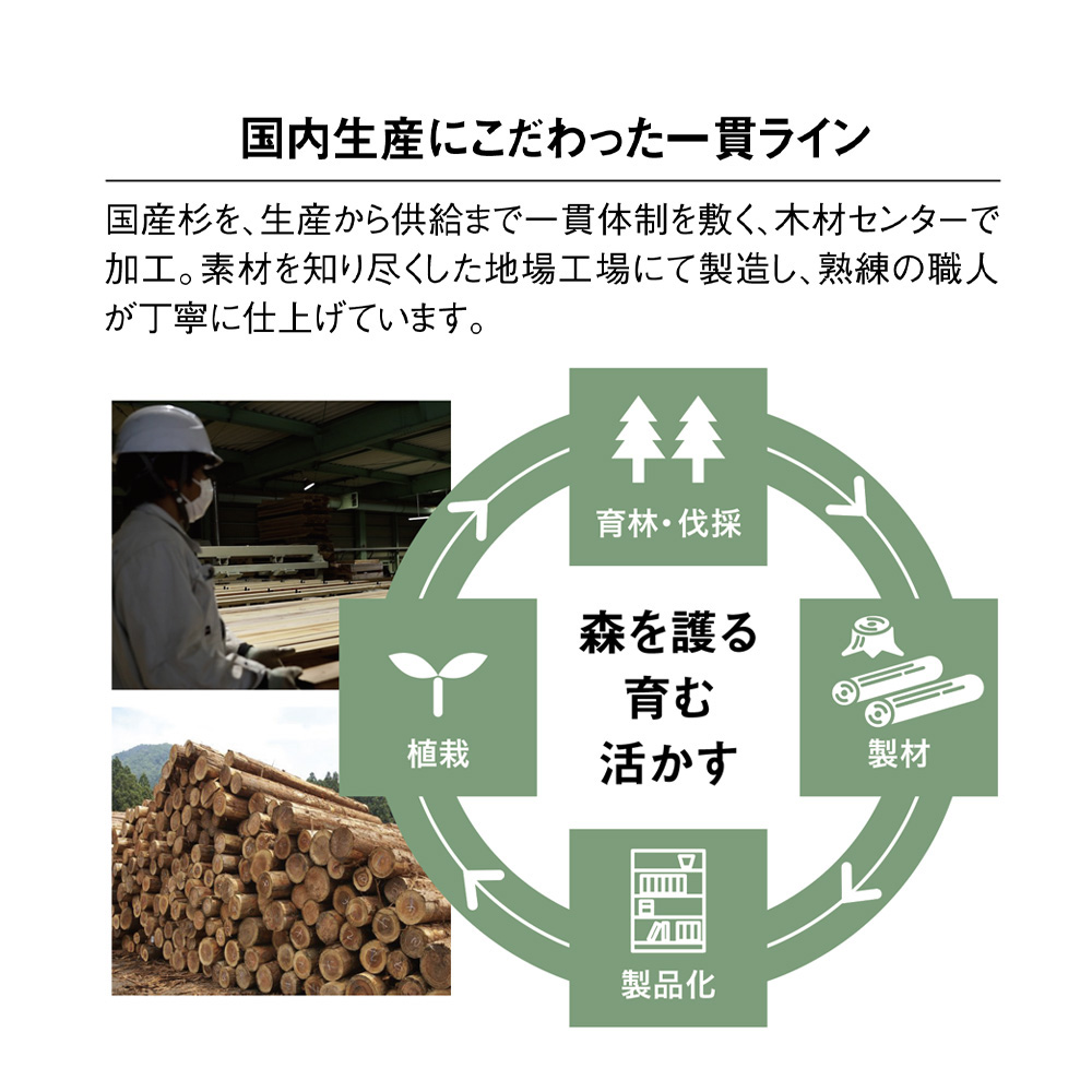 兵庫木材センターで丹念に製材された国産杉を使用。