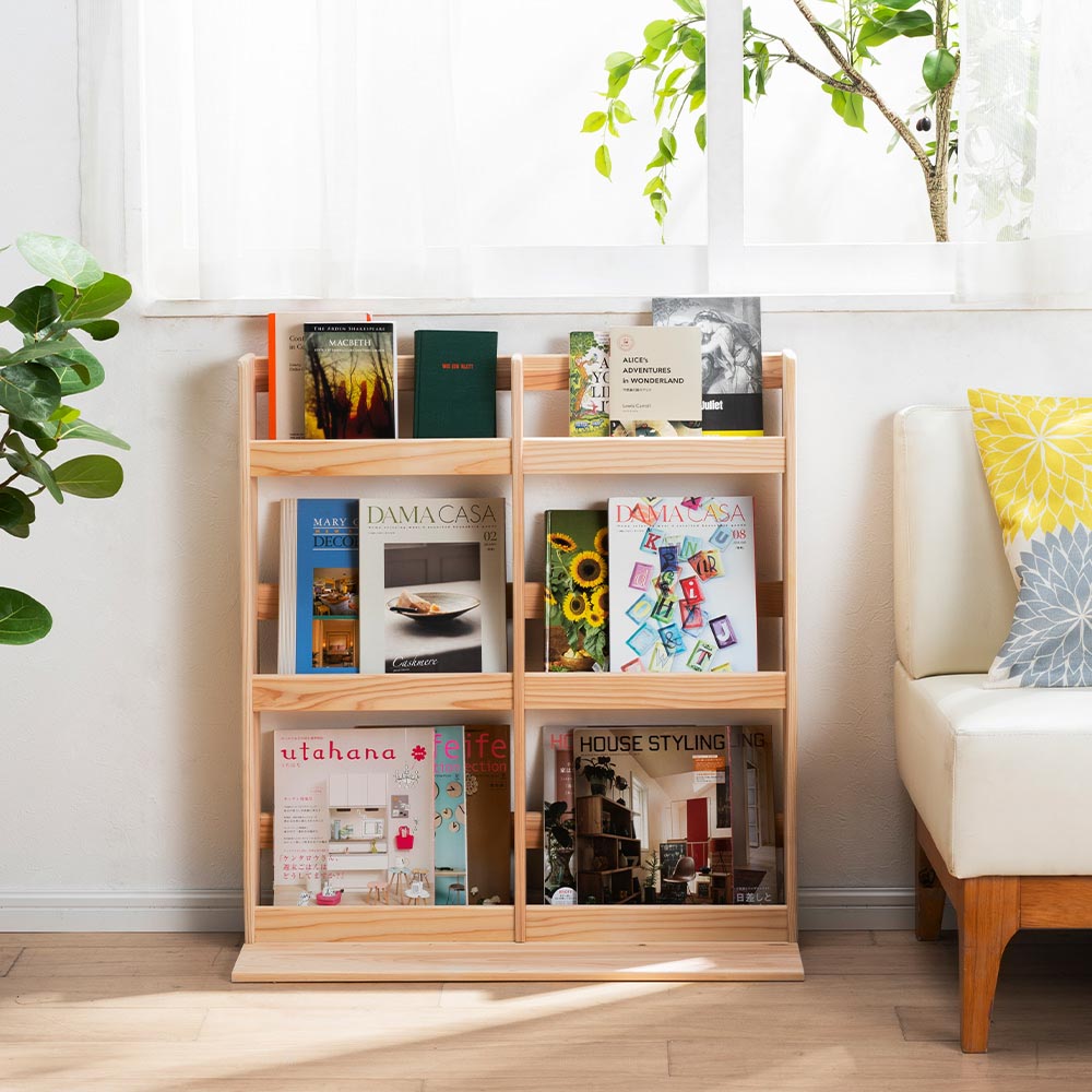 •  絵本のほかにも、おしゃれな表紙のインテリア誌や写真集などのマガジンラックとしても。※写真は幅78.5cmタイプ