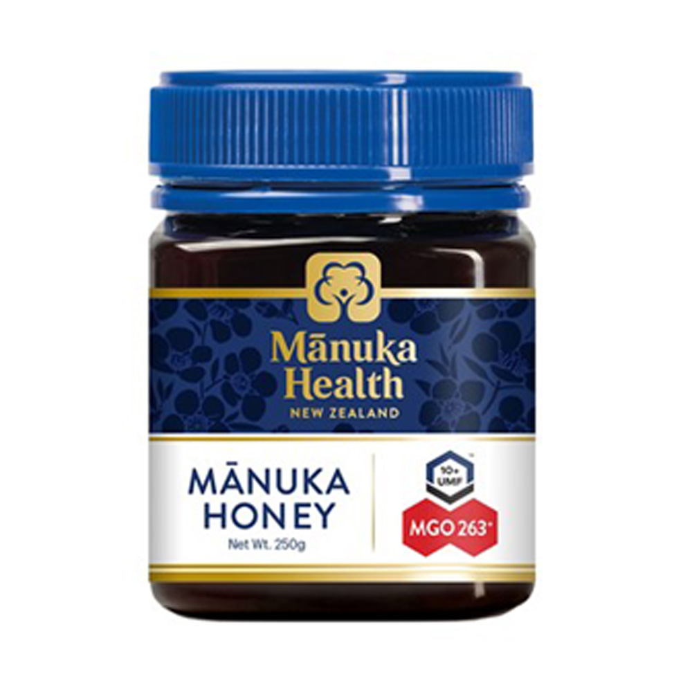 独自製法で、クリーミーに食べやすく貴重なマヌカハニー。「MGO263+」はマヌカハニーの美味しさはそのままに、MGOを実感したい方にぴったりです。あなたを守る、おいしい習慣。ニュージーランドで、限られた期間だけ開花する貴重な「マヌカ」の花から採取。ほかのはちみつには無い独特の香りとコク、そして群を抜いて多いMGO(食物メチルグリオキサール)が魅力です。「MGO263+」とは、1kg中に263mg以上のMGOが含まれているということ。「MGO263+」はマヌカハニーの美味しさはそのままに、MGOを実感したい方にぴったりの商品です。マヌカヘルスのおいしさのひみつマヌカヘルス社は、MGOグレードを先駆けて採用。製造工程の中で複数回にわたりテストを実施し、品質とグレードを保証しています。独自の製法によりマヌカハニー特有の、クリーミーで濃厚な味わいながら、さっぱりとした甘みで食べやすいと定評のあるマヌカハニーです。マヌカハニーの楽しみ方健康志向の方は、1日ティースプーン1〜2杯がおすすめです。 そのままはもちろん、お湯に希釈したり、紅茶やコーヒー、ハーブティーに入れても美味しくお召し上がりいただけます。健康を維持し、おいしく体調管理をしたい方におすすめです。