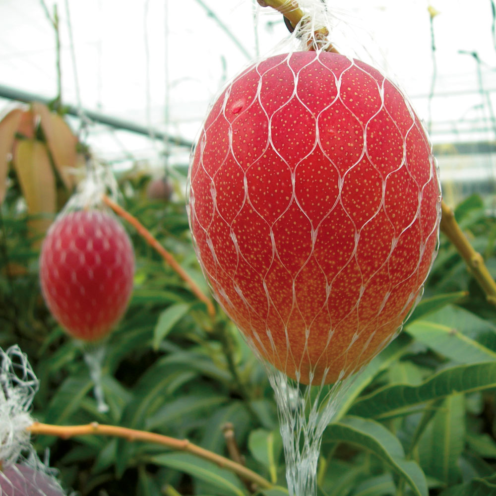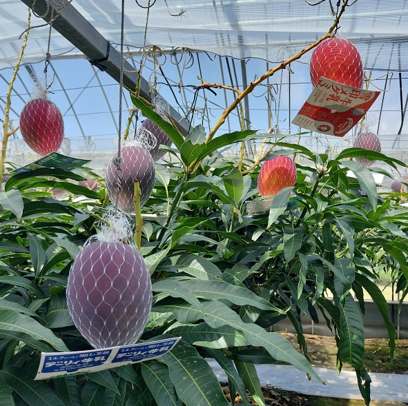 まんべんなく着色するように、全てのマンゴーに反射板(なんと牛乳パック!)をセット。手間ひまかけて栽培されています。