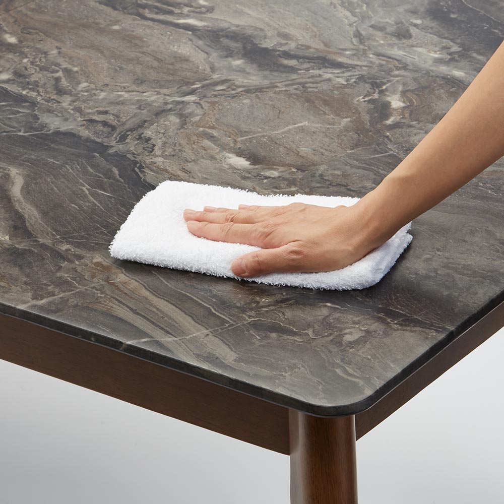 モダンな容姿にタフさをプラスクリエイティブな趣味空間へ。料理や趣味を気兼ねなく楽しめる使いやすさにこだわったダイニングシリーズ。キズや汚れに強い石目調のメラミン天板。座面は汚れてもお手入れしやすい素材に。背もたれや座面のカーブが体にフィット。Priepo(プリエポ)のテーブルは機能性の高い「ハイプレッシャーラミネート(HPL)」。3つのおすすめポイントをご紹介(1)熱に強い耐熱性が高く、短時間であれば高温のフライパンや鍋などを直接置いても大丈夫です。(しかし、天板にとっては良い事ではないので、出来るだけ何かを敷いて頂くことをお薦め致します。)(2)汚れに強いHPL天板は熱に強く、傷がつきにくいだけではなく、食材や油などの汚れも染み込みません。紫外線で色あせることもありませんので、いつまでもきれいな状態を保ちます。さらにアルコールスプレーなどを使用することで、除菌もできるのでいつでも清潔にお使い頂けます。(3)特徴のある素材感、質感が高い色あせや変色の原因となる空気や紫外線に対しても、耐性が強いので、綺麗な天板が長持ちします。 Priepo(プリエポ)のチェアはPVCレザー張りでお手入れ簡単。日頃の手入れの事を考え、張地はPVCレザーを張り込み、汚れなどがついても、さっと拭いて落としやすい。背もたれはゆったり座れる様に体包むラウンド型になっています。幅135コンパクトダイニングとして使える定番サイズ幅160チェアを4脚並べても、ゆとりを持って使えるサイズ感