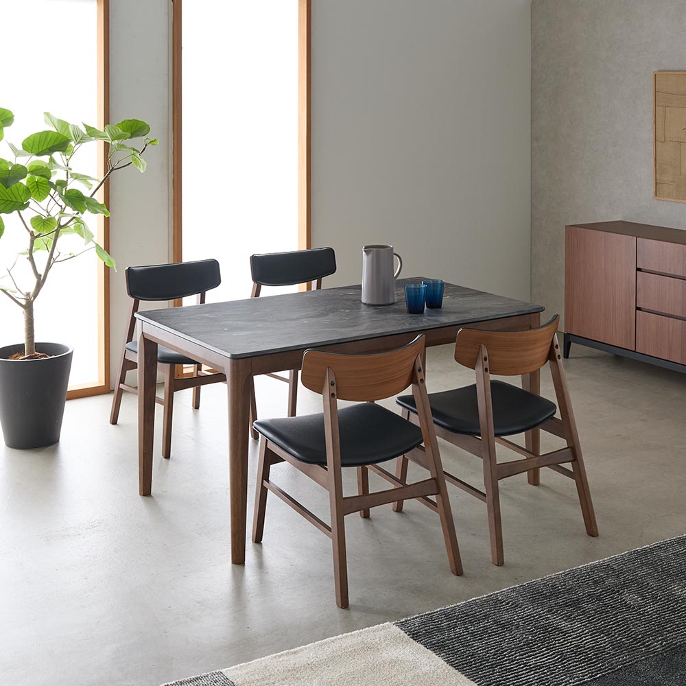 コーディネート例(イ)ブラック ※お届けはダイニングテーブル幅135cmです。