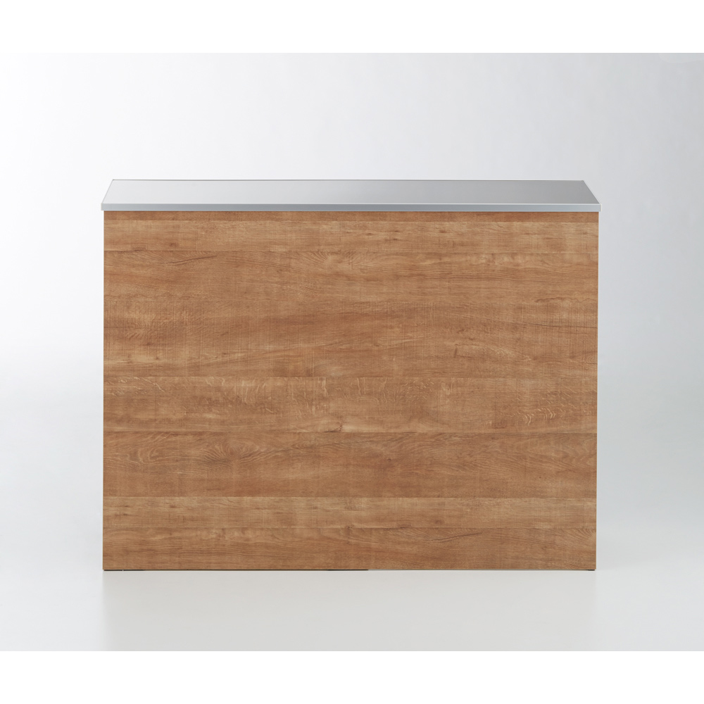 キッチンスペースを有効活用できる収納付きの間仕切りカウンター。ステンレス天板だから、作業台としても活躍。窓下に置いたり、アイランドキッチンのように間仕切り使いにしたりとレイアウトは自在です。天然木調の風合い、シャープなステンレス天板●高級感ある佇まいが、落ち着いたキッチン収納を演出します。●おしゃれなシステムキッチンにぴったりのデザインです。●お部屋のインテリアをナチュラルモダンにされている方におすすめです。ポイント(1)空間を仕切れる、間仕切り仕上げのキッチンカウンター●本体の背面も前面と同じ木目調にすることで空間の中央にも置くことができます。●お手軽にアイランド型キッチンをが作れるのでお部屋のレイアウトの幅が広がります。●2台並べて設置すると、ダイニングとの空間を分けるのに便利です。ポイント(2)調理台に使える、使い勝手のよいステンレス素材●調理スペース、お皿を置くスペースが足りない方にはステンレス天板が便利。●引き出し付きのカウンタータイプはキッチンの収納も増えて1台2役です。