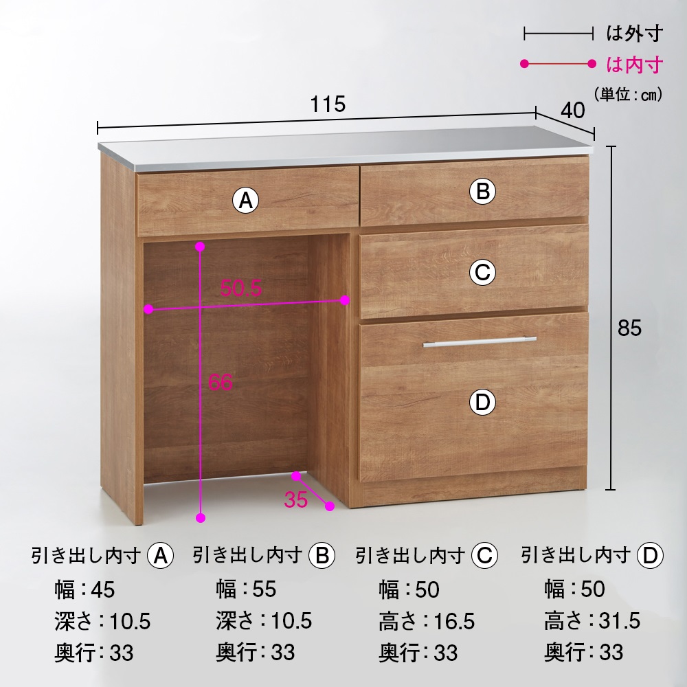 (外寸cm)幅115×奥行40×高さ85 (オープン部内寸幅cm)50.5