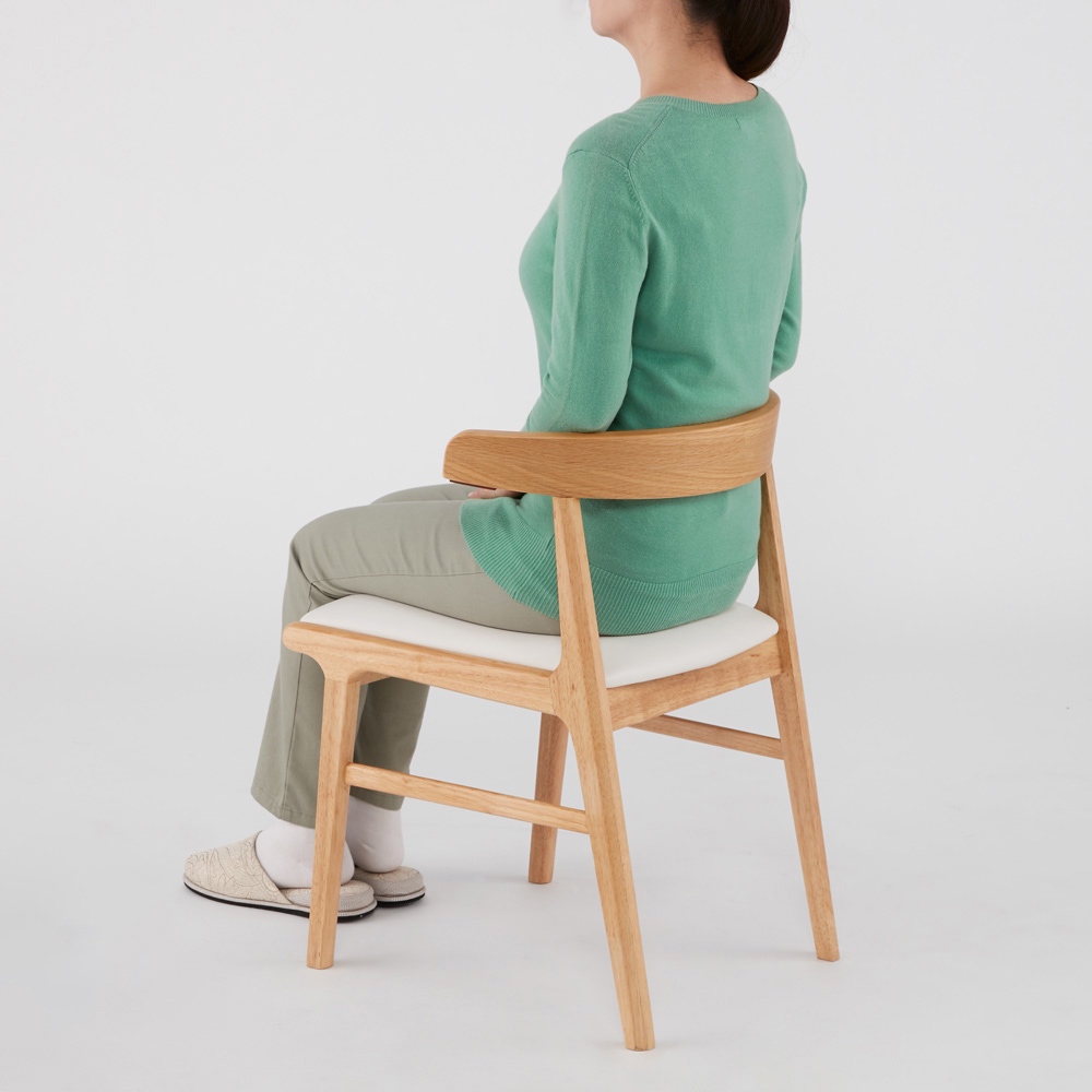 出入りのしやすいハーフアームチェア。アーム部分は天板にひっかける事ができるのでお掃除の時も邪魔しません。座面はPVCを使用しているので毎日のお手入れも楽々。フレームの色はダークブラウントナチュラルの2色からお選び頂けます。◆チェアはダイニングテーブルの天板に引っ掛けることができるのでお掃除楽々。◆アームの下には天板を傷つけないように保護材が付いていており、天板を傷つける心配がありません。◆肘付なので立ち座りがしやすいチェア。◆アーム部分は通常のアームチェアの半分なので、出入りがしやすい仕様です。