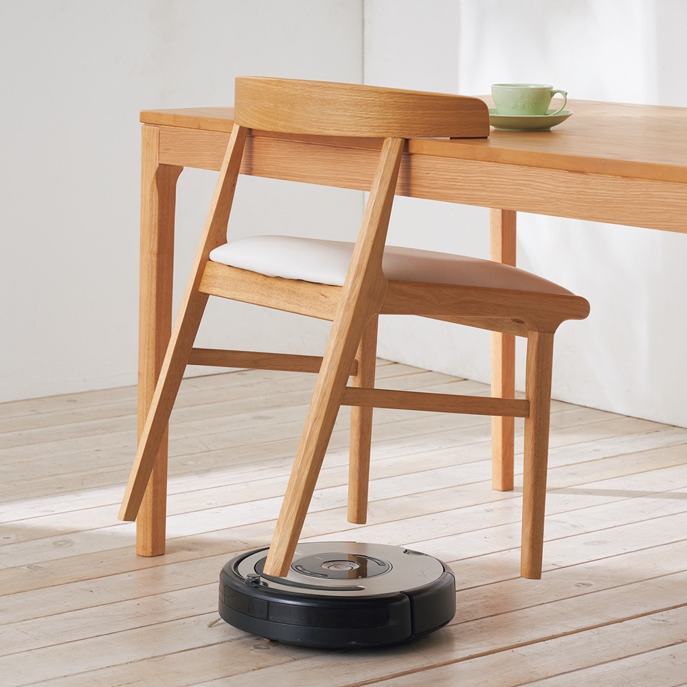 チェアを天板に引っ掛けることができ、ロボット掃除機もスイスイ。