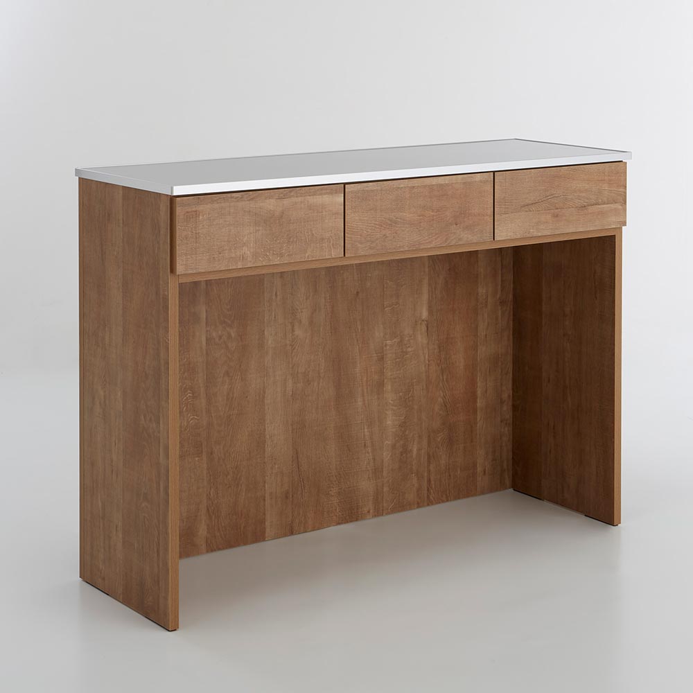 デスクのような形状ながら、調理に適したステンレス素材。じっくりレシピ本のをみながらの料理や、座ったままゆっくり下ごしらえをしたい際に便利です。
