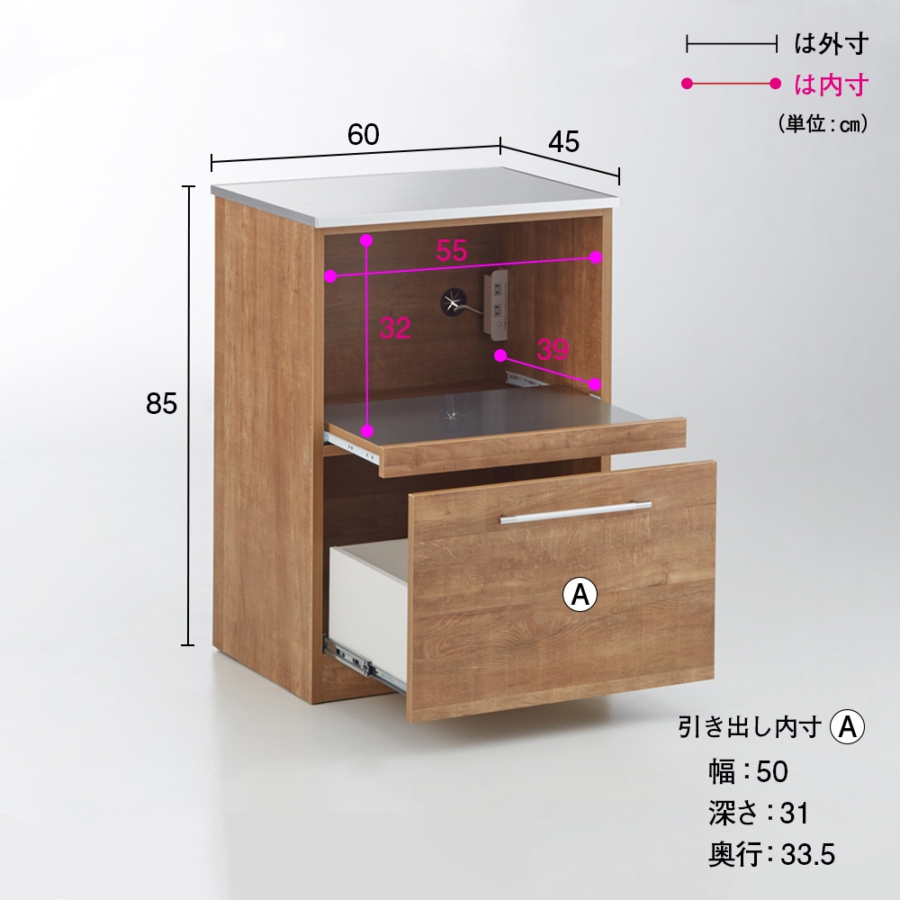 炊飯器など蒸気の出る家電が使いやすいスライドテーブル。