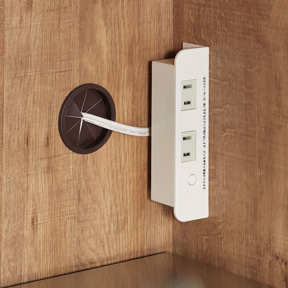 家電の収納部は2口コンセント付き。コーヒーメーカーやケトルにも。