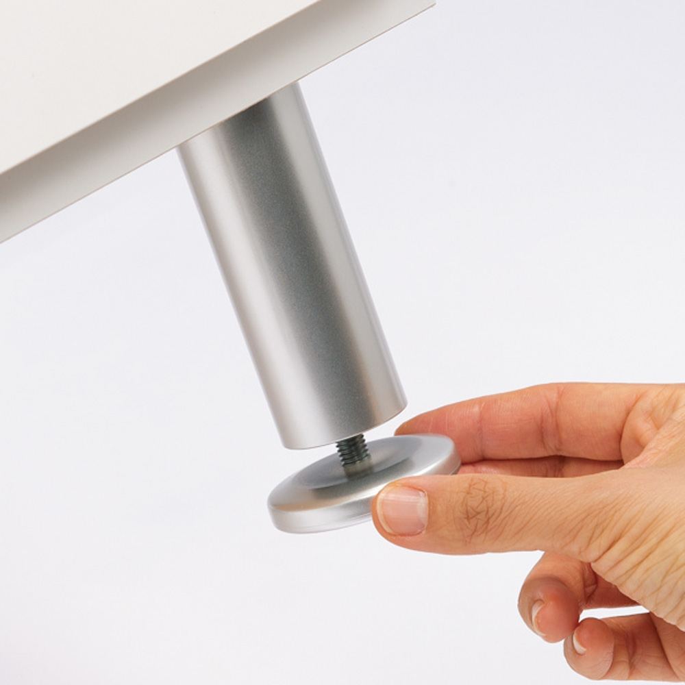 脚の高さが調整できるアジャスター付き。床のやわらかい場所でもしっかり設置できます。