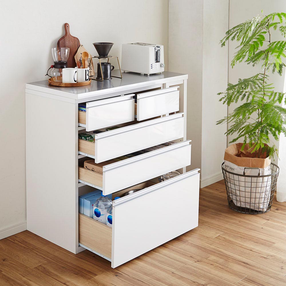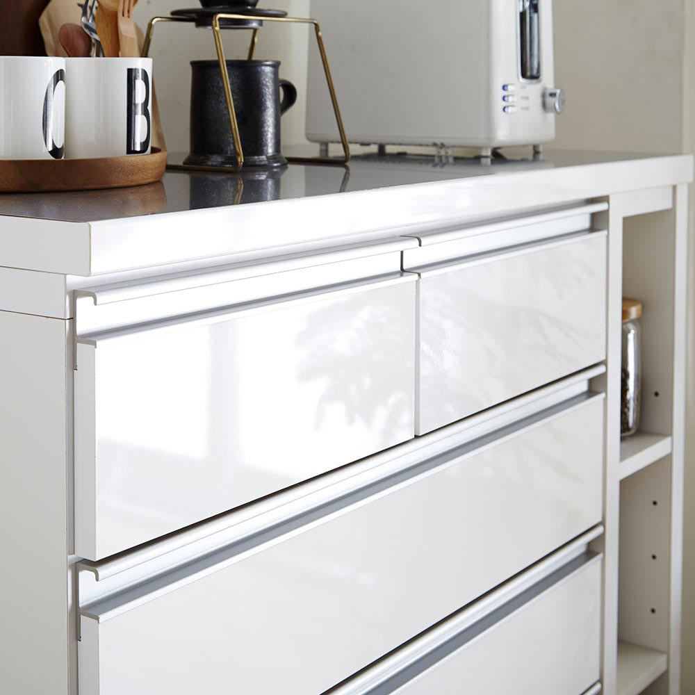 (ア)ホワイト たっぷり引き出しの収納力で、キッチンをスッキリと片づけて。