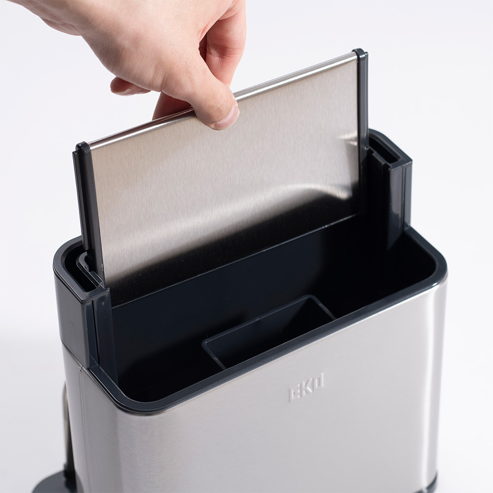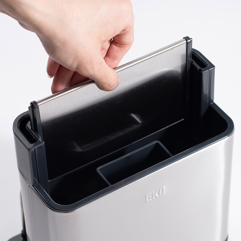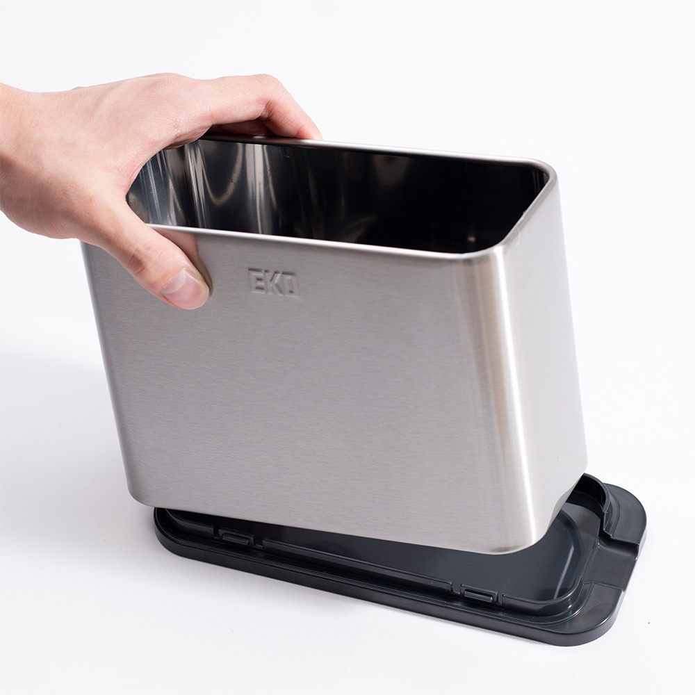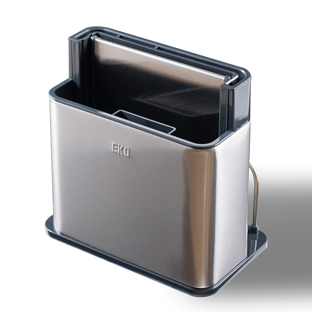 包丁もカトラリーもまな板も、すべてをスマートに一括収納。分解洗浄できるステンレス製オーガナイザープラスで、キッチンワークが変わる。調理の時間を、もっと創造的に。4in1マルチ収納システムで調理がもっと快適にEKOキッチンオーガナイザーは3分割収納に加え、まな板収納スペースを追加した驚きのキッチン収納です。手前エリアには背の低いカトラリー類を整理整頓、中央の自由スペースにはお玉やトングなどの長さのあるツール、奥には包丁を最大3〜4本収納。さらに側面にはまな板をスッキリ立てて保管できるスペースを確保。調理に必要な道具をオールインワンで管理できる画期的なデザインです。スタイリッシュなステンレスデザインがキッチンを引き立てる高品質ステンレス素材を採用したコンパクトでモダンなフォルムは、どんなキッチンインテリアにも調和します。まな板収納機能を追加しながらも洗練されたデザインを維持し、限られたカウンタースペースを有効活用。美しさと機能性を両立したキッチン収納の新基準です。徹底的な清潔さを実現する分解可能構造食材に直接触れるまな板とキッチンツールを収納するからこそ、衛生面は最重要。EKOキッチンオーガナイザープラスは完全分解できる設計で、普段は手の届かない内部まですみずみまで洗浄可能。まな板を立てて収納することで通気性も確保し、カビや雑菌の繁殖を防ぎます。食の安全にこだわる方に理想的な機能性です。調理ワークフローを最適化する統合収納包丁、まな板、調理器具をひとつの場所にまとめることで、調理の準備から実行、片付けまでのプロセスが驚くほどスムーズになります。必要なツールがすべて手の届く範囲に整理されているため、無駄な動きが減り、効率的な調理が可能に。特に限られたスペースのキッチンでその真価を発揮します。多様なキッチンツールとまな板に対応する優れた収納力さまざまな形状や大きさのキッチンツールはもちろん、プラスチック製の薄いまな板から厚手の木製まな板まで、幅広いタイプに対応。一般的なサイズのまな板であれば複数枚を立てて収納することも可能です。料理好きの方が持つ多彩なキッチンアイテムを美しく整理できます。使い手を考え抜いた実用的な設計日々のキッチンワークを徹底分析して生まれた、使い勝手を最優先にした設計。まな板の出し入れがスムーズで、調理の準備から片付けまでの時間を短縮します。散らかりがちなキッチンカウンターを整然と保ち、調理スペースを最大化。キッチン環境の改善を本気で考えるなら、このオールインワンオーガナイザーがあなたの強い味方になります。