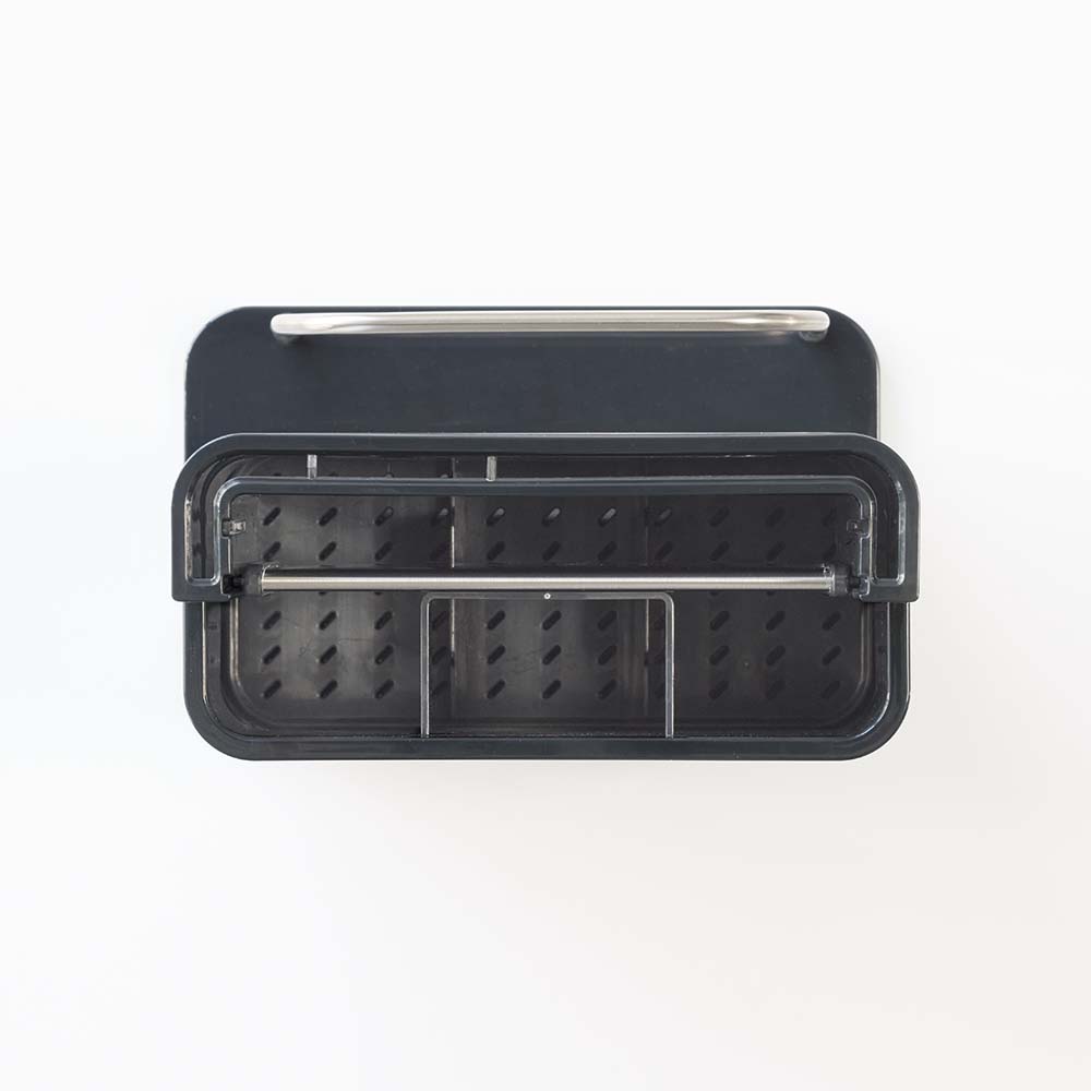 中央部の仕切りは取り外して奥行を2段階に調整できます。手前にセットすればカトラリースペースがアップします。