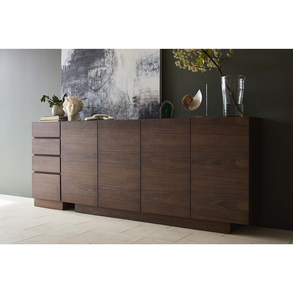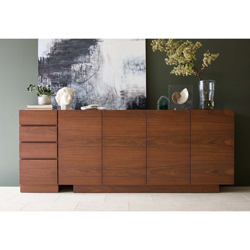 コーディネート例(ア)ダークブラウン 商品は右側4枚扉のキャビネットです(引出は別商品)