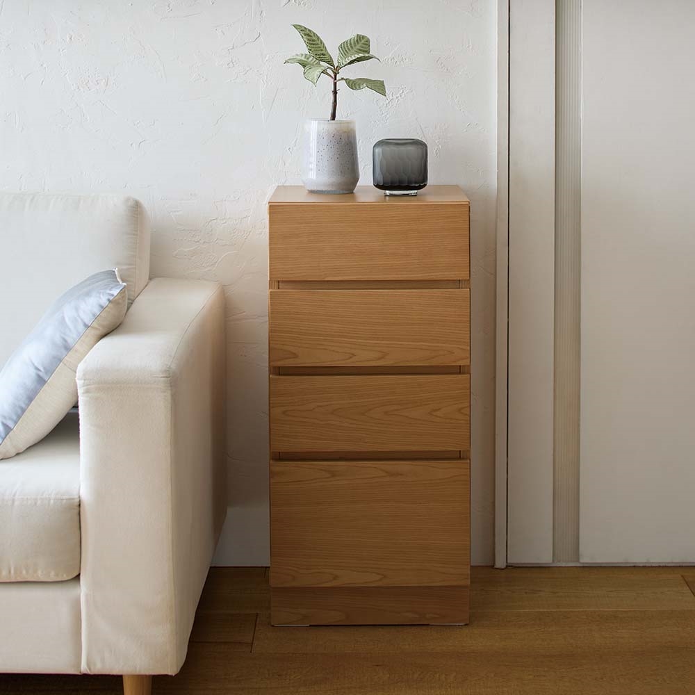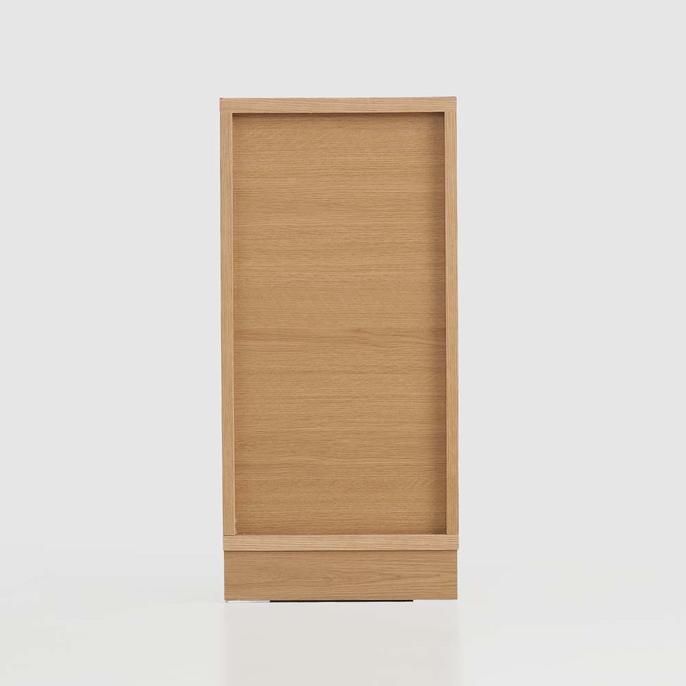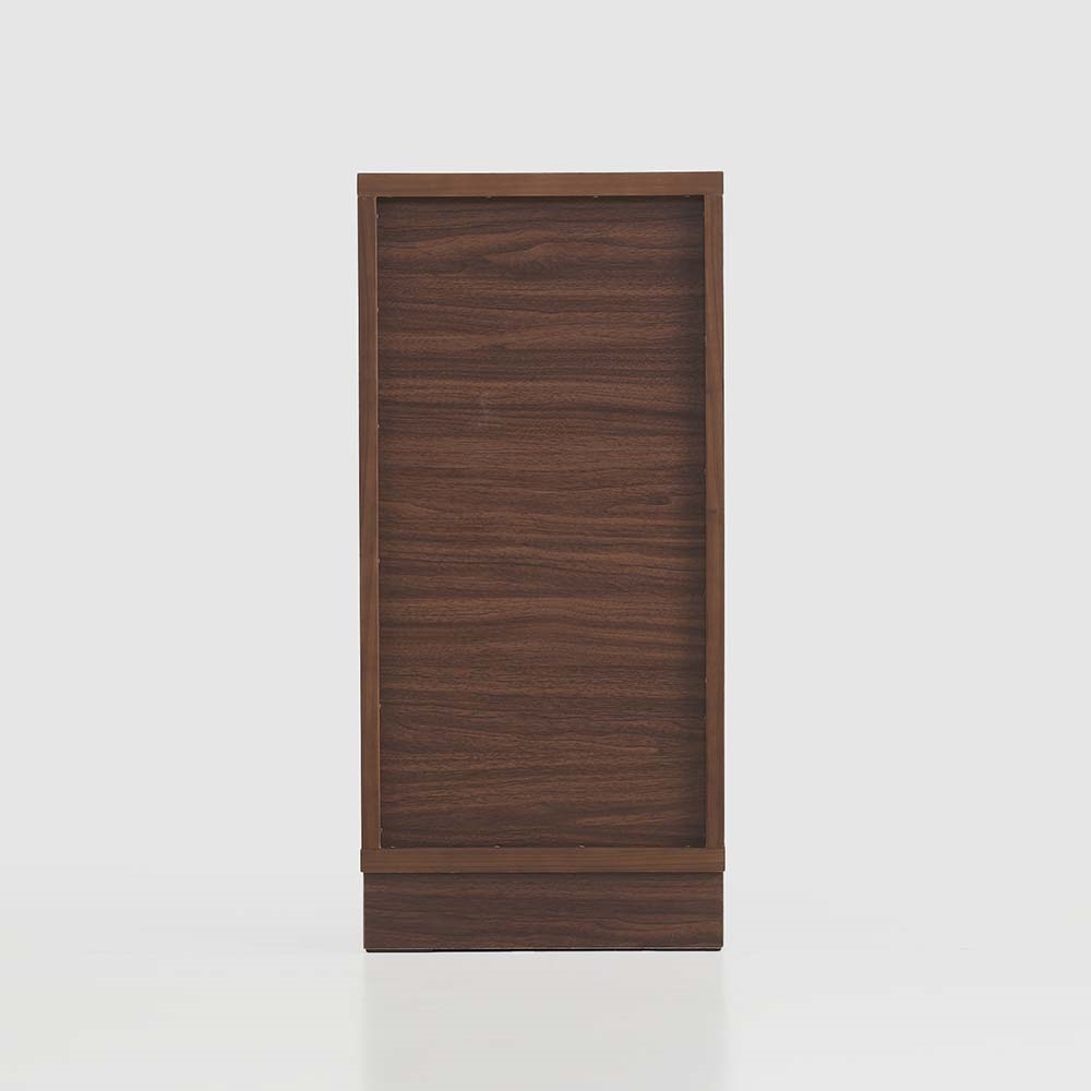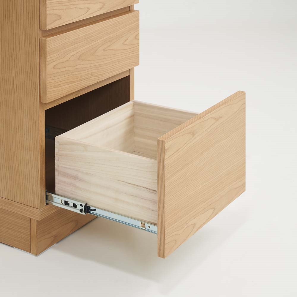 まるで「一枚板」のような圧倒的な存在感。天然木工芸突板を使い、木目が横へひと続きに見えるデザインにこだわりました。