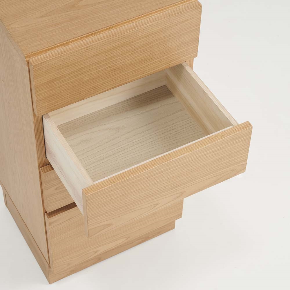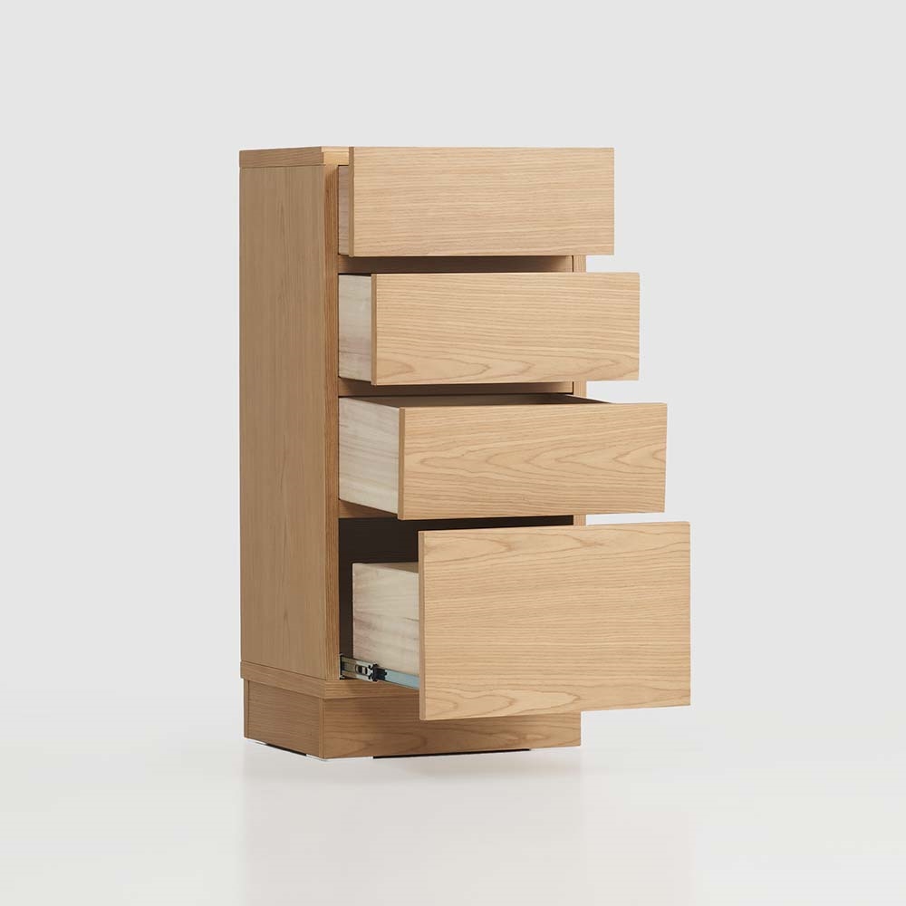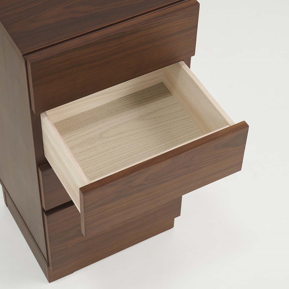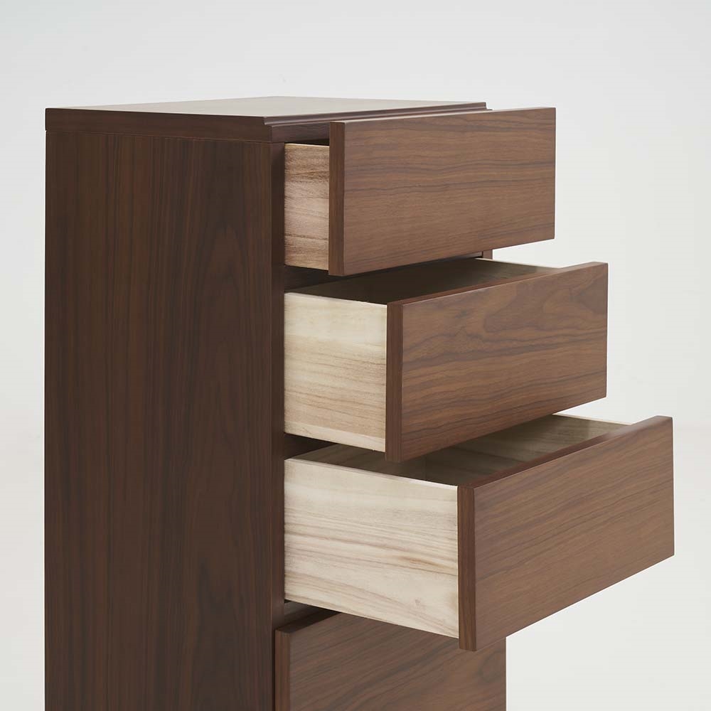 まるで「一枚板」のような圧倒的な存在感。天然木工芸突板を使い、木目が横へひと続きに見えるデザインにこだわりました。