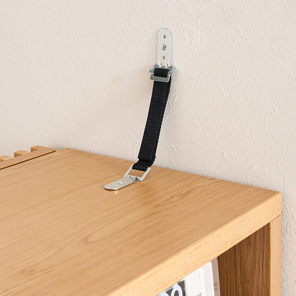 間仕切りとして使用する際は、安全のため本体側面を壁に付けて、付属の転倒防止バンドで本体と壁を繋いで設置してください。