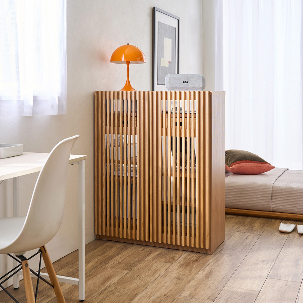 格子扉でほどよく隠して仕切って、お部屋をさりげなくセンスアップ。