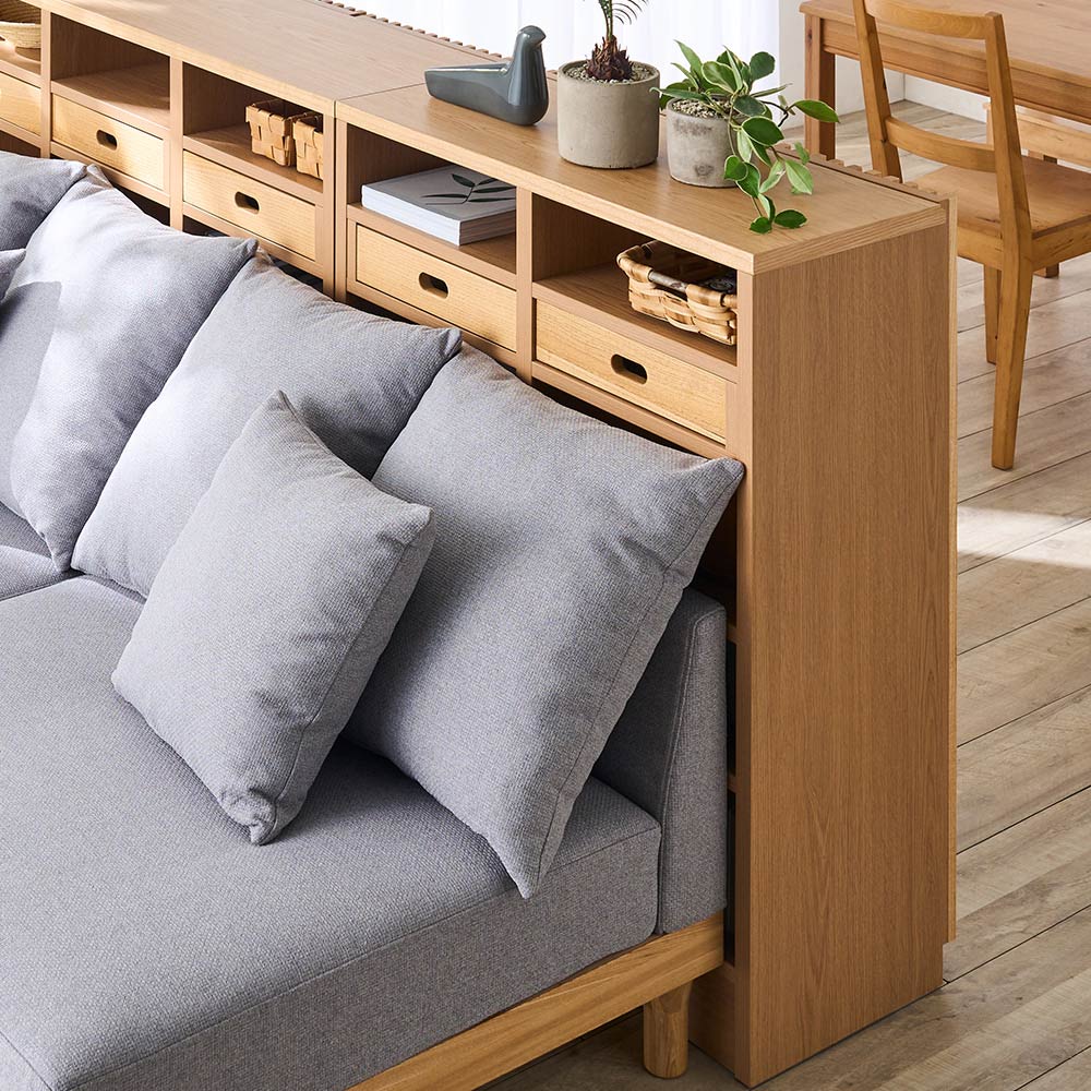 背もたれの高さが73cm以下であれば、ソファ側からも引き出しが開けられます。