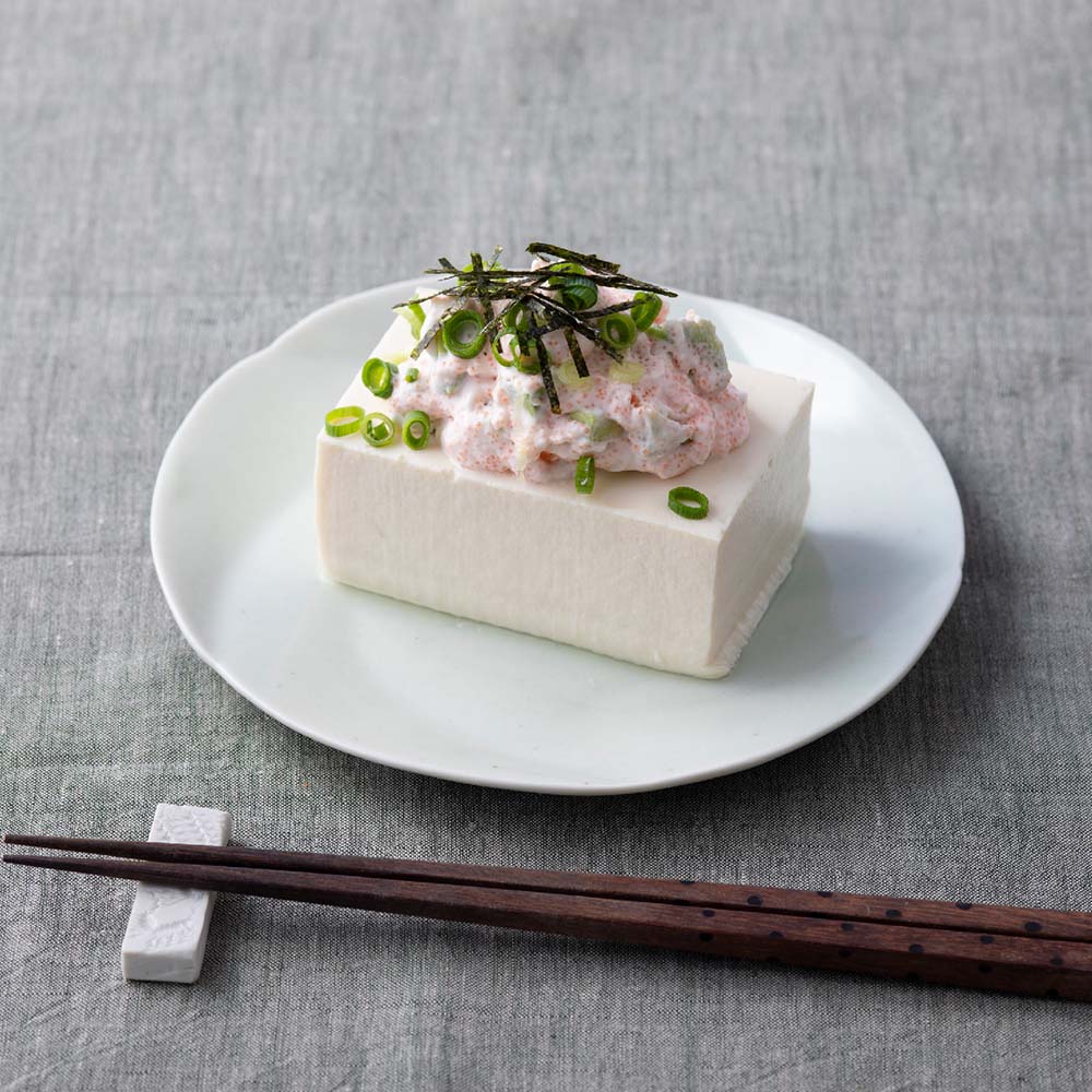 明太子クリームをお豆腐にのせて、おしゃれなおつまみに。アイデア次第でスイーツ以外にも大活躍。