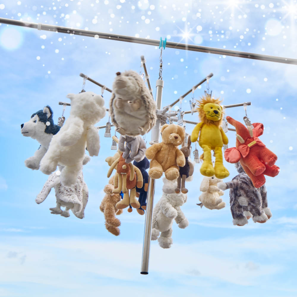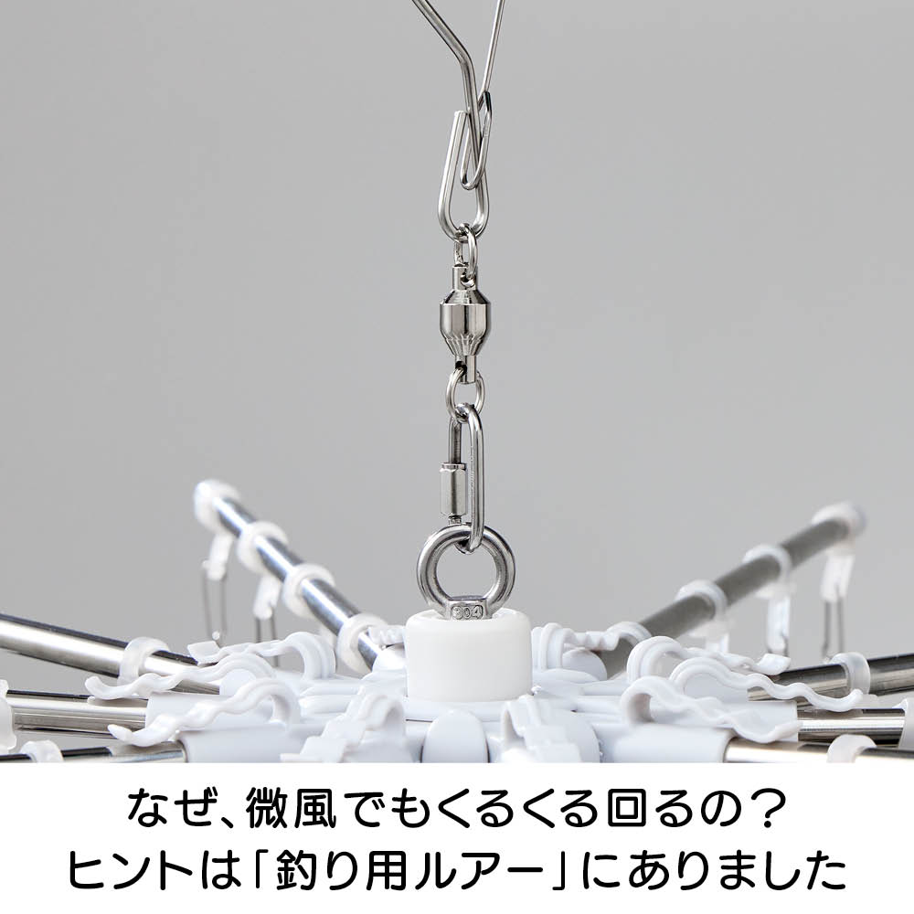 吊るすとメリーゴーラウンドのようにくるくる回る、今までなかった物干し