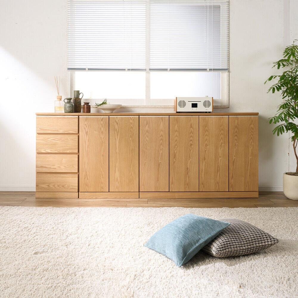 (ア)ナチュラル タモ天然木の佇まいが美しいチェスト。シリーズ商品と組み合わせれば機能的なスペースに。カウンター下収納庫としてもオススメ。