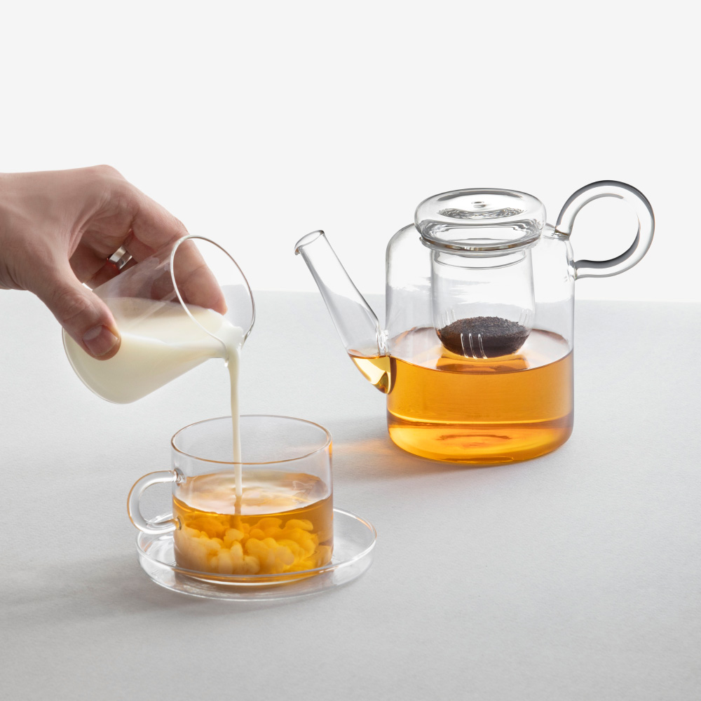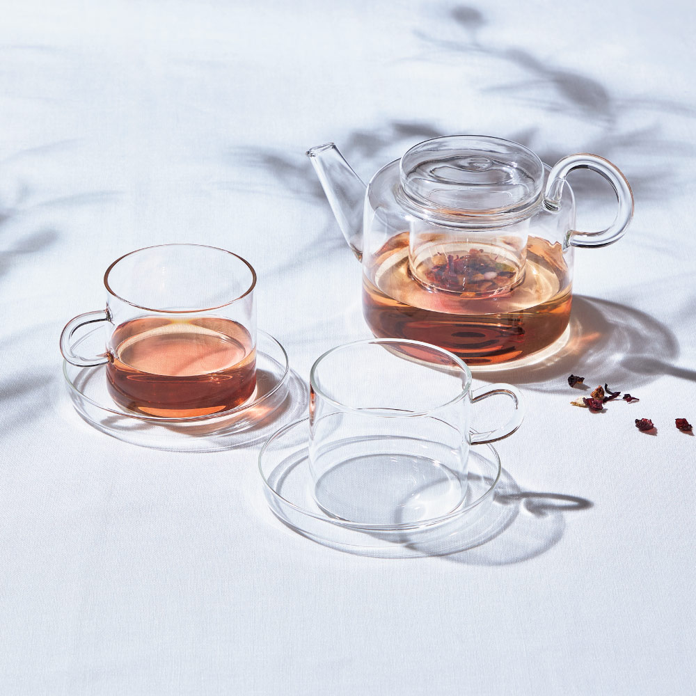 羽のように軽やか。ボロシリケイトの透明感で、色も香りも澄みわたる。手吹きの上質感で、日常の一杯をスマートに格上げ。ギフトにもぴったりです。羽のように軽やか。ボロシリケイト製カップ&ソーサー硬質ボロシリケイトガラスを採用。薄くて軽い質感が魅力で、カップの口当たりはソフト。透明度が高く、飲み物の色やニュアンスを美しく映し出します。毎日のティータイムを、スマートにアップグレード。PIUMA=“羽”。エレガントなミニマルデザインイタリア語で“羽”を意味する「PIUMA」シリーズ。すべて職人の手吹きによる繊細な仕上がりで、直線的なフォルムと丸い取っ手の対比がモダン。軽やかな佇まいが、洗練されたテーブルを演出します。ソーサーはフラット。小皿としても多用途窪みのないフラットなソーサーは、小皿使いに便利。カップを少しずらせば、焼き菓子やチョコをさりげなく添えられます。おもてなしから日常まで、使い勝手の良さが光る設計。色を愉しむ、ガラスティーウェアガラスのカップだから、紅茶や緑茶、ハーブティーの色味がダイレクトに伝わります。ミルクを注いだときのグラデーションも美しく、“見る楽しみ”まで加える上質な一杯に。紅茶はもちろん、冷製スープやゼリーのスタイリングにも便利です。軽くて強い、ボロシリケイトガラス素材は理化学器具にも使われるボロシリケイトガラス。耐熱性・耐衝撃性に優れた硬質ガラスで、軽量かつ高い透明度が魅力です。軽量で扱いやすく、忙しい日々のティータイムにストレスフリー。食洗機も使用可能です。(取扱説明書では食器洗浄機40℃まで推奨とありますが、一般的な家庭用食洗機で問題なくお使いいただけます)気の利いた大人のギフトにも化粧箱入りですのでギフトにもぴったりです。イッケンドルフ ミラノについて20世紀初頭、ドイツ・イッケンドルフで創業。1990年に拠点をイタリア・ミラノへ移し、伝統とモダンを融合したデザインを展開しています。高度な職人技を受け継ぎ、デザイナーの発想をハンドメイドで形にする老舗ガラスブランドです。
