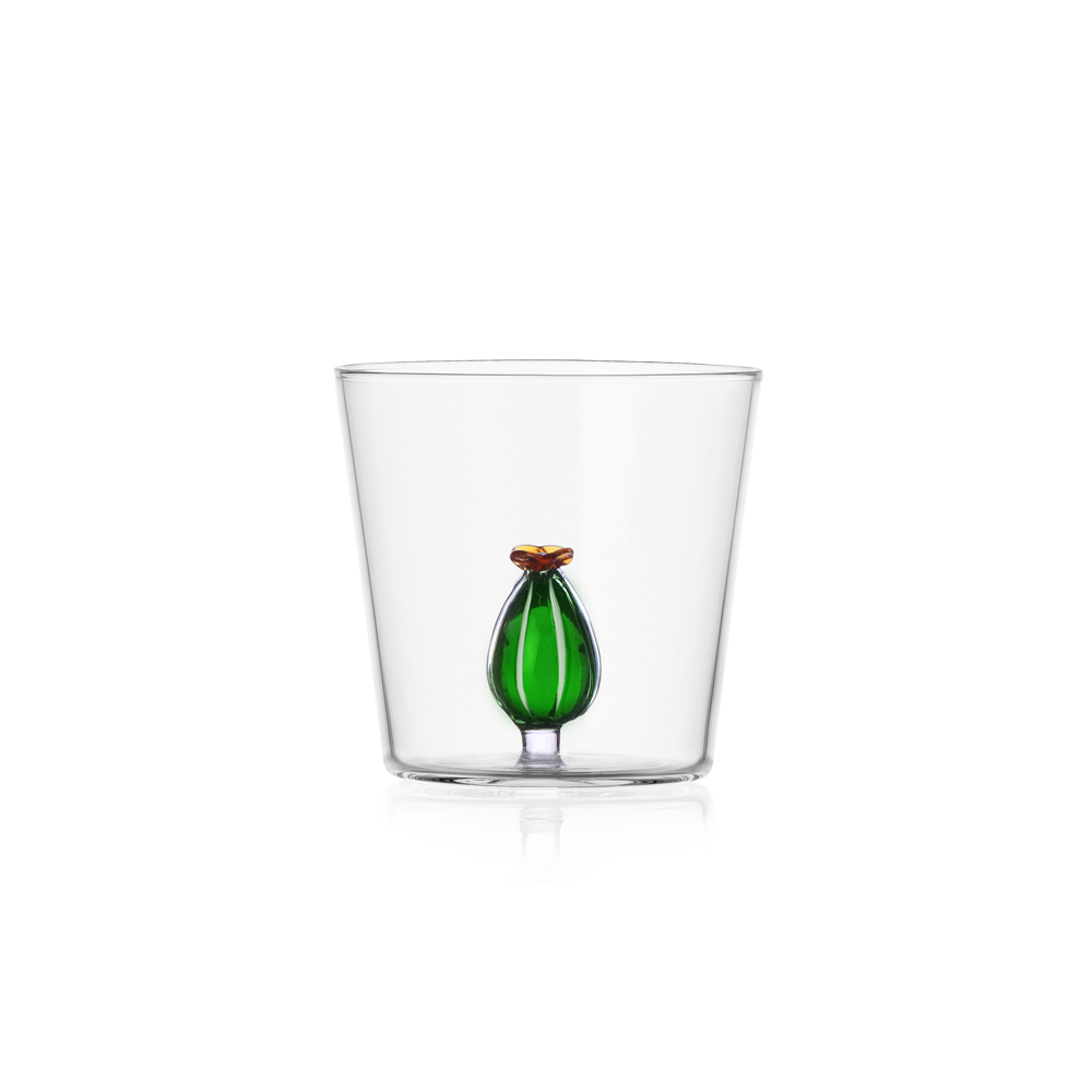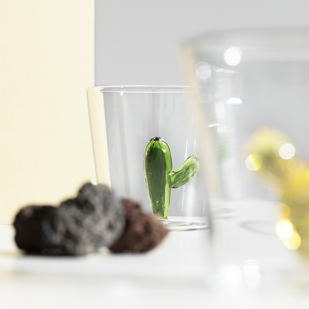 贈り物にも自分用にも。心躍るモチーフ・イン・タンブラー!もらって嬉しい、使って楽しい、人を笑顔にします。澄んだ透明感に、遊び心をひとさじクリアガラスのタンブラーに、小さなサボテンのモチーフを封じ込めました。澄んだ透明感の中に浮かぶ愛らしいアクセントは、日常の一杯を少しだけ特別に。大人も子供も笑顔になるデザインです。軽くて強い、ボロシリケイトガラス素材は理化学器具にも使われるボロシリケイトガラス。耐熱性・耐衝撃性に優れた硬質ガラスで、軽量かつ高い透明度が魅力です。扱いやすく、見た目もクリアです。アイスもホットも、美しく冷たい水からホットドリンクまで対応。緑茶を注ぐと、草原に佇む動物のように見えてとっても楽しい!何を入れるか楽しみになりますね。ハンドメイドが生む、唯一の表情熟練職人が一点ずつモチーフを組み付けて製作。サイズやモチーフの表情、微細な気泡、わずかな歪みなどに個体差が生じますが、手仕事ならではの味わいとしてお楽しみください。毎日の使い勝手もスマートに見た目は繊細でも、食洗機対応でお手入れは簡単(取扱説明書では食器洗浄機40℃まで推奨と記載されていますが、一般的な家庭用食洗機で問題なくお使いいただけます)。もちろん、スポンジでの手洗いでもきれいい洗っていただけます。軽さと丈夫さで、デイリーに活躍します。ギフトにも映えるデザイン化粧箱入りです。誕生日やお礼、引越し祝いなどのサプライズに。世代を問わず笑顔になる、上質感と可愛げのバランスが好評です。イッケンドルフ ミラノについて20世紀初頭、ドイツ・イッケンドルフで創業。1990年に拠点をイタリア・ミラノへ移した老舗ガラスブランドです。職人によるハンドメイドを一貫し、デザイナーのアイデアを高度な技術で形にしています。