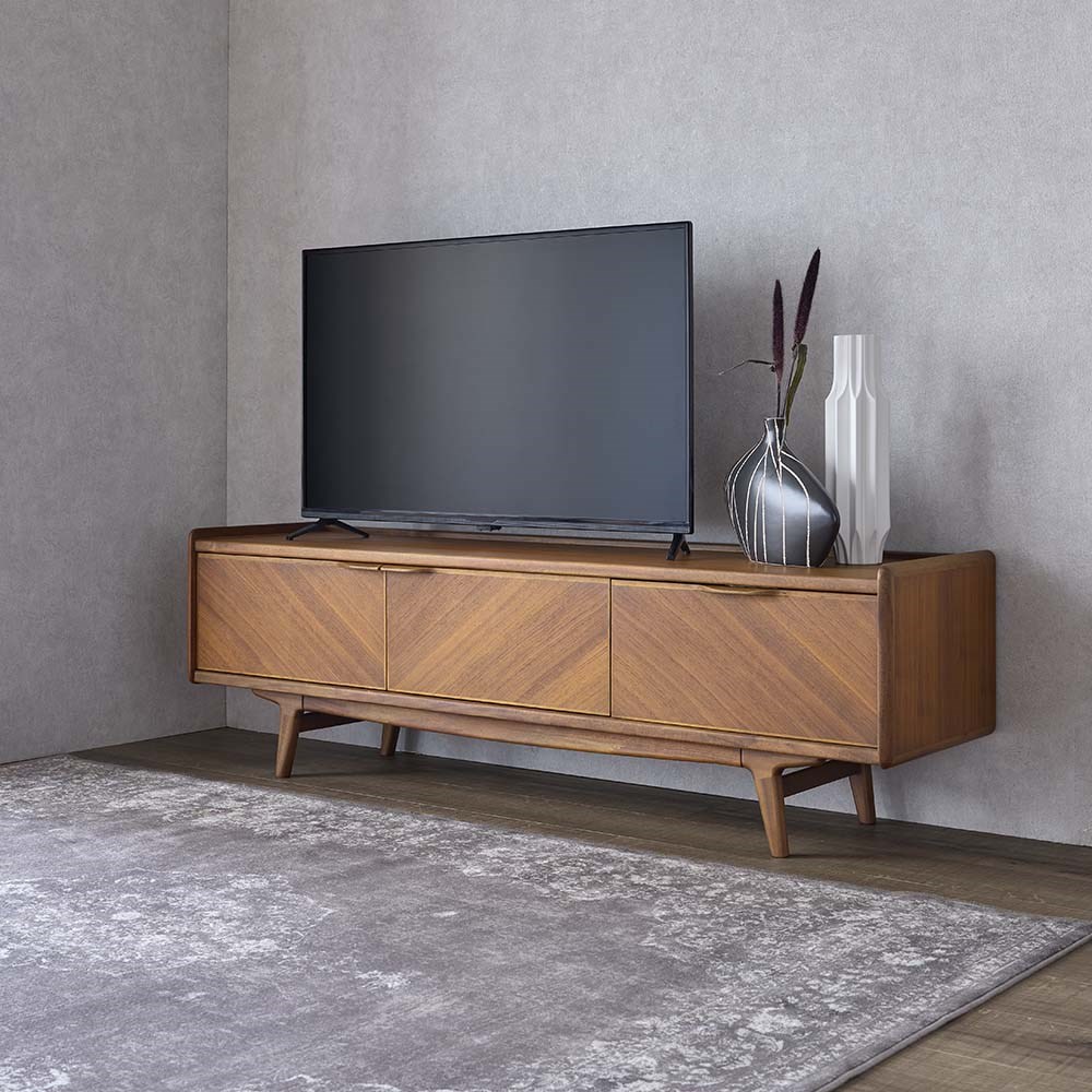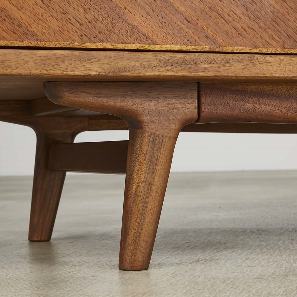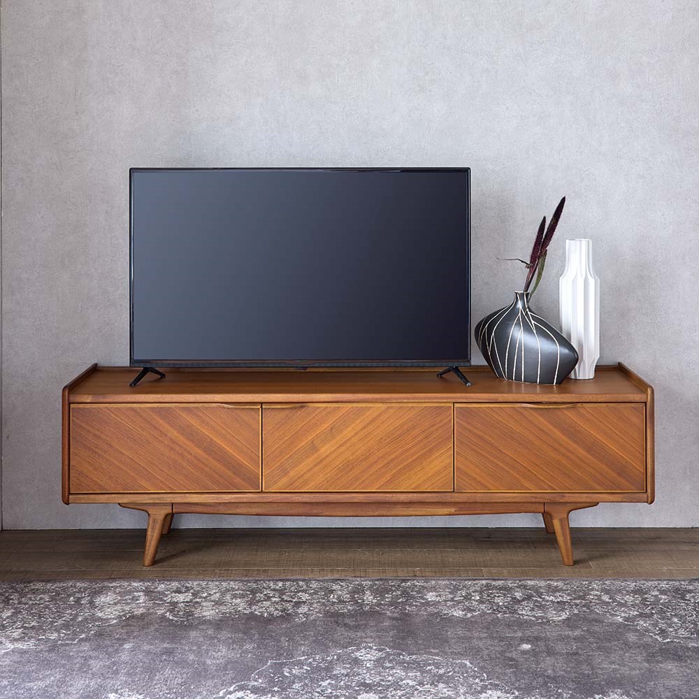 風合いと愛着深まる北欧ヴィンテージの世界。北欧デンマークに惹かれたヴィンテージの世界1940〜1960年代に黄金期を迎えた、今に語り継がれる北欧家具のスタイル「デンマーク・モダン」。矢羽根模様など、どこか懐かしさを感じさせる家具に木の風合いを添えたソファ。そこに、長きにわたって愛されたシェードデザインに、新たな魅力を与えたデンマークの名品ライトをあわせ、過ごすほどに愛着の湧く空間をしつらえました。細部にこだわる、ローボードのディテールローボードの前板にはウォルナットの化粧板を矢張りの様に合わせた仕様。見る向きや角度によって表情を変える姿には、細部に渡るこだわりが映えます。左側のデッキ収納部は閉じたままでもリモコン操作ができるようになっています。天然木にこだわった、商品づくりテーブルのフレームにはアカシアの天然木をふんだんにつかい、デザインにこだわりました。ソファ、ローテーブルにも同じ「アカシア」が使われており、シリーズで揃えて愉しめるデザインになっています。【D-modern】デンマーク・モダンが息づくHOUSE STYLINGの新ブランド。味わい深いアカシア材をはじめ、長く愛せるヴィンテージデザインにこだわりました。