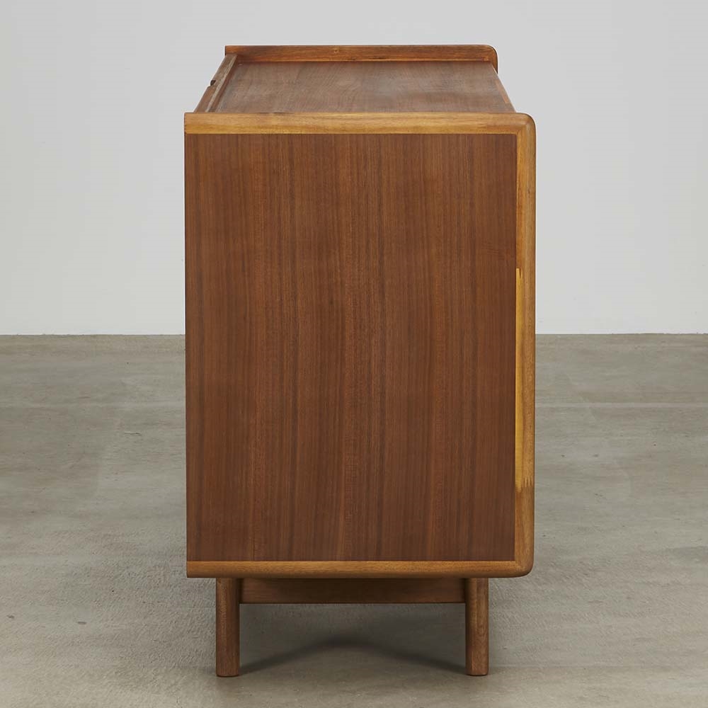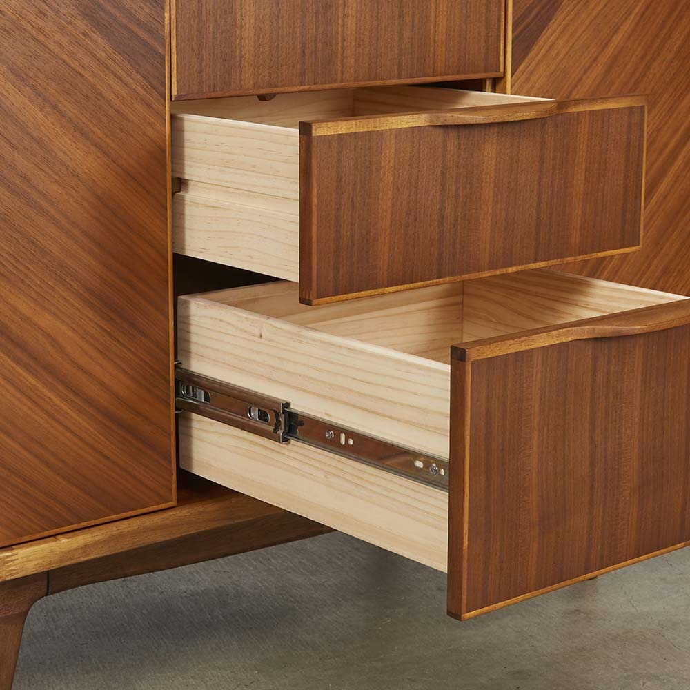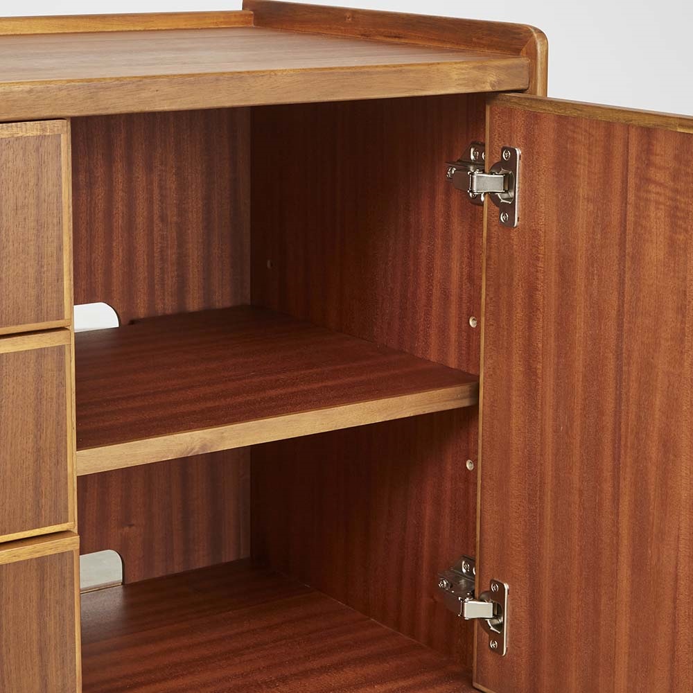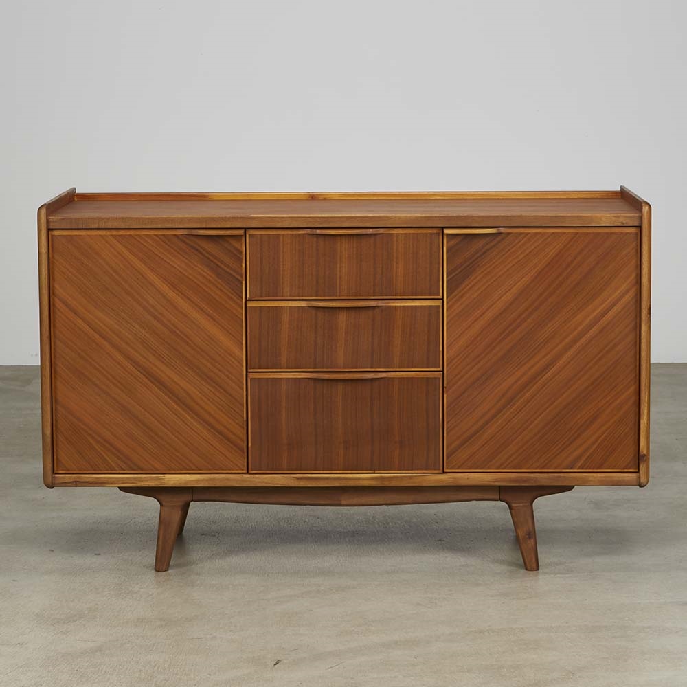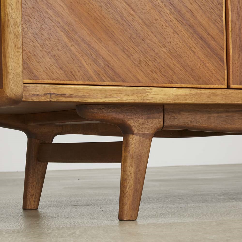 風合いと愛着深まる北欧ヴィンテージの世界。ハイタイプのテレビ台としても使える、リビングに置けるサイドキャビネット。北欧デンマークに惹かれたヴィンテージの世界1940〜1960年代に黄金期を迎えた、今に語り継がれる北欧家具のスタイル「デンマーク・モダン」。矢羽根模様など、どこか懐かしさを感じさせる家具に木の風合いを添えたソファ。そこに、長きにわたって愛されたシェードデザインに、新たな魅力を与えたデンマークの名品ライトをあわせ、過ごすほどに愛着の湧く空間をしつらえました。細部にこだわる、キャビネットのディテールキャビネットの前板にはウォルナットの化粧板を矢張りの様に合わせた仕様。見る向きや角度によって表情を変える姿には、細部に渡るこだわりが映えます。中央の引き出しとサイドの開き扉でリビング回りの収納物をしっかりと収納できます。天然木にこだわった、商品づくりテーブルのフレームにはアカシアの天然木をふんだんにつかい、デザインにこだわりました。ソファ、ローテーブルにも同じ「アカシア」が使われており、シリーズで揃えて愉しめるデザインになっています。【D-modern】デンマーク・モダンが息づくHOUSE STYLINGの新ブランド。味わい深いアカシア材をはじめ、長く愛せるヴィンテージデザインにこだわりました。