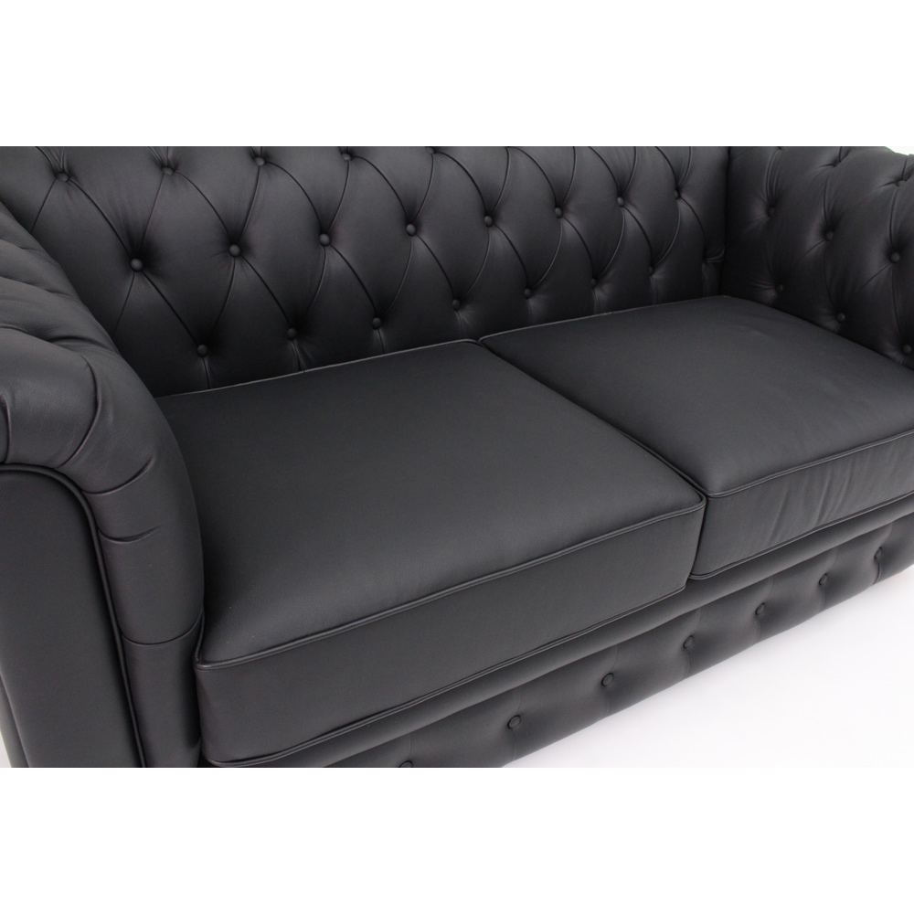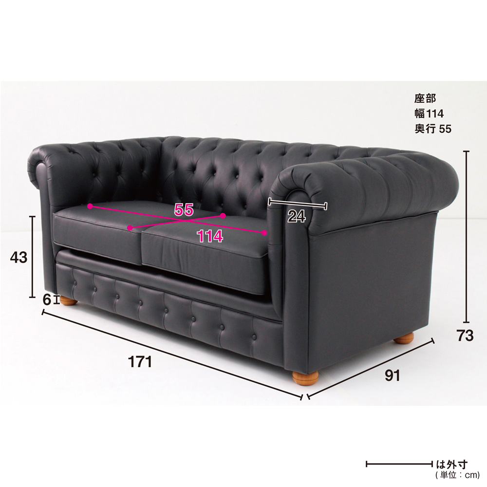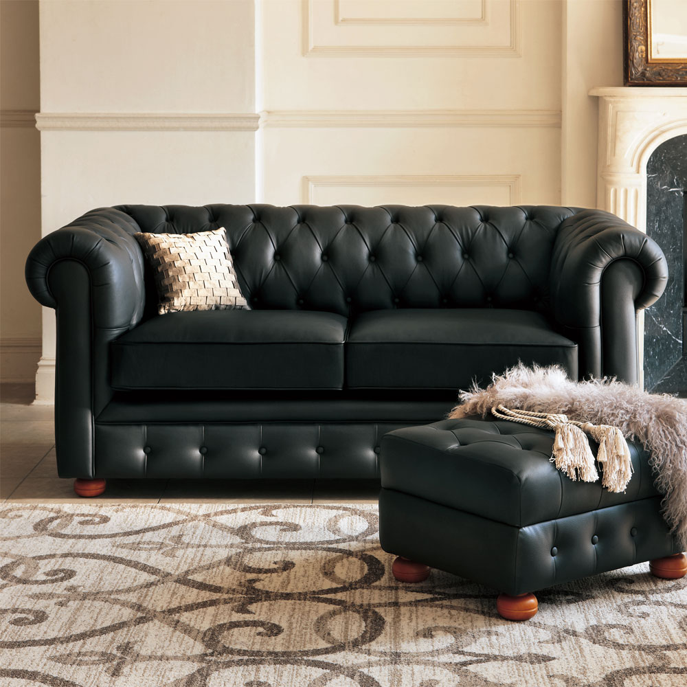 ボタン留めで仕上げた英国トラッドをモダンにアレンジしたデザインソファー。クラシックにもモダンにも、海外インテリアのようなお部屋コーディネートにぴったりのレザーソファー。英国調トラッドデザインのチェスターフィールドスタイルのソファが叶えるあなただけの贅沢空間◆クラシカルでゴージャス、中世ヨーロッパ家具を想わせるクラシック風デザイン。◆ボタン留めの伝統的な装飾がアーム部と背面にちりばめられていて、豪華でとってもラグジュアリー。◆本革素材に細かいギャザーを寄せたニュアンス豊かな表情がリュクスで美しいリビングルームを演出します。◆ヨーロピアンクラシック家具をモチーフに、現代のどんなお部屋にも合うようモダンに仕上げました。座り心地もボリューム感たっぷり◆分厚い座面クッション仕様でやや硬めなしっかりとした座り心地の椅子です。◆座面内部構造は鋼製バネとウレタンフォームを敷いたしっかりとしたつくり。◆クッション性とホールド感のある贅沢な座り心地です。◆一つ置くだけで存在感を放つ豪華な仕上げで、リビングダイニングやベッドルーム、パーソナルルームや客間にもおすすめです。チェスターフィールドソファとは?英国発祥のデザインで背もたれとアームが同じ高さでボタン留めされた革張りの大きなソファのことを、チェスターフィールドソファと言います。名前の由来は諸説ありますが”英国紳士のシンボル”と呼ばれ、ダンディズムの象徴となっているフィリップ・チェスターフィールド伯爵(Philip Chesterfield)がデザインしたという説と、愛用していたという説、英国チェスターフィールド市の第4代市長であるフィリップ・スタンホープ Phillip Stanhope (1694 - 1773)にちなんでこの名前がつけられたという説などあります。商品担当者からのメッセージ海外インテリアのような重厚感のある素敵なお部屋の雰囲気になるヨーロッパ調家具はディノスの人気商品です。クラシック家具やアンティーク家具とのお部屋コーディネートにもぴったり。届いたその日からご使用いただける完成品なのも魅力のひとつです。ディノスが自信を持ってお勧めする輸入インテリアをお楽しみください。