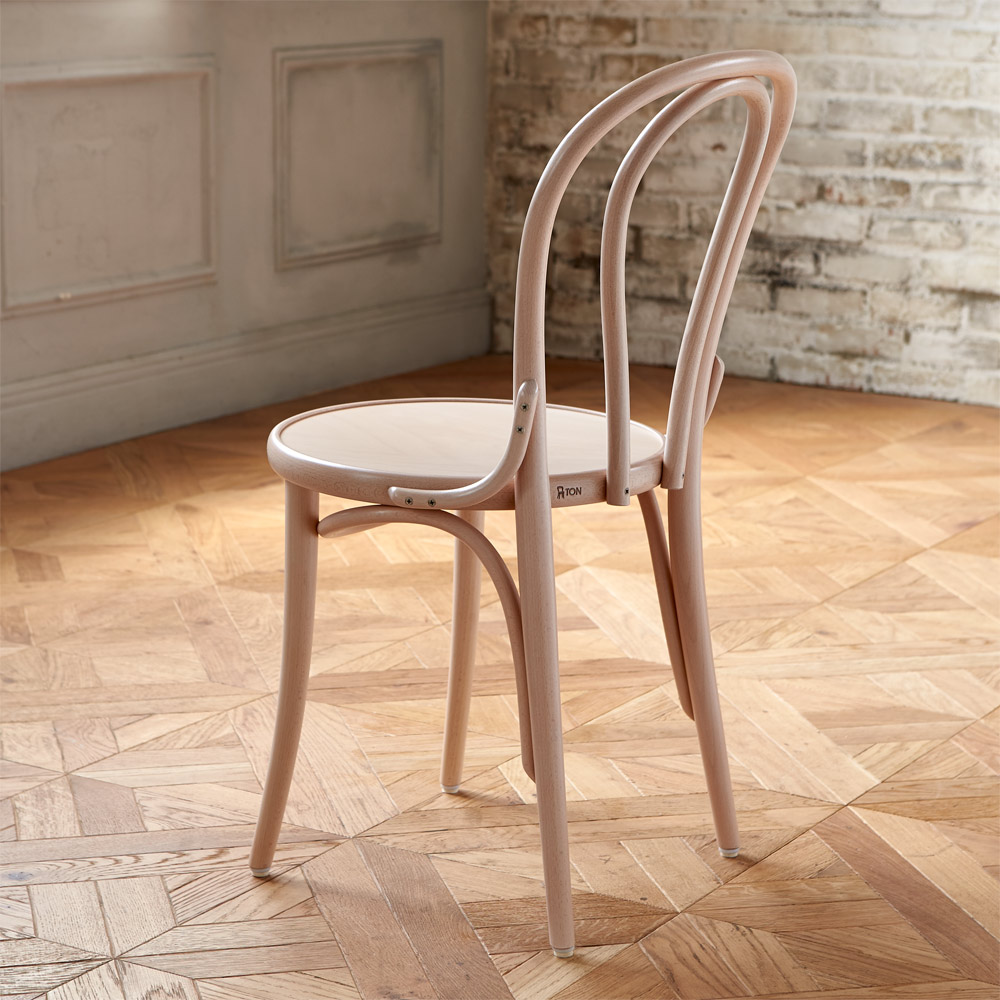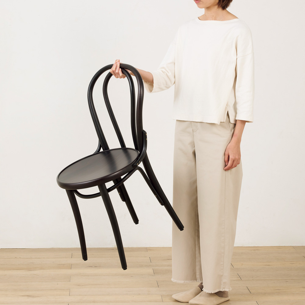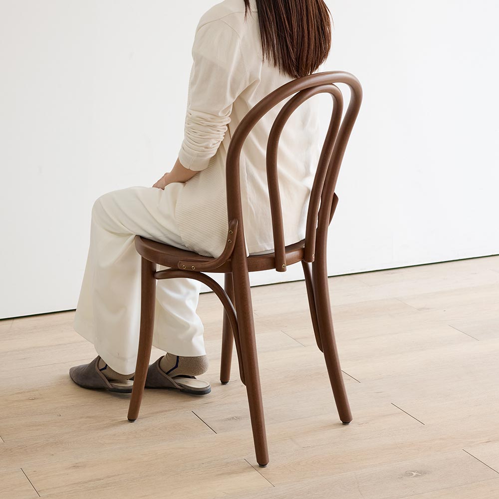 後ろから見ても美しくデザインされているのがTON社のチェアの特徴。なんと8個のパーツだけで作られています。