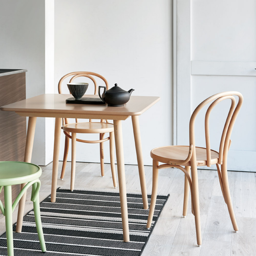 軽くて丈夫な木製の曲げ木ダイニングチェア。創業150年、ヨーロッパの伝統を現代に受け継ぐチェコ・TON社が誇るダイニングチェアは、ヨーロッパを始め、世界中のカフェやレストランで愛用されています世界中から愛さ続ける曲げ木細工の老舗「TON(トン)社」1858年、世界的家具メーカー「トーネット社」の源流となる曲げ木工場をスタートさせた、ドイツ生まれの家具職人「ミヒャエル・トーネット」。ミヒャエルが発明した、硬い天然木を蒸して柔らかくしカーブをつけるという画期的な「曲げ木技法」により、椅子デザインの美しさと量産化が大幅に進化し、バウハウスをはじめとした後世のデザインと家具の工業化に大きな影響を与えました。チェコのビストリッチェ工場は1953年には社名を現在の「TON(曲げ木家具工場の略語)」にあらため、150年以上変わらない伝統的で上質な曲げ木家具メーカーとして、年間50万台以上の家具を製造。「TON」の製品は、軽く丈夫で値段も手頃なため、世界中のカフェやレストランなどで愛用されています。1859年の発売以来、2億脚以上生産されたロングセラー商品天然の無垢材を緩やかに曲げて描く優美なライン。後世のデザインにも多大な影響を与え、ヨーロッパの椅子の歴史を語る上でも重要なTONの曲げ木チェア。9つの部材だけのシンプルな構造で、曲げ木椅子の魅力である軽さを実現しています。片手で簡単に持ち運ぶことができるので、お掃除の際に移動させるのが苦になりません。ダイニングチェアとしてはもちろん、玄関で、寝室で、リビングのアクセントとして、さまざまなシーンで使いこなす楽しみがあります。TON社の工場があるチェコでは、曲げ木チェアがカフェなどで利用されており、日本人にとっての畳のように身近な存在。ヨーロッパのカフェスタイルに憧れがある方はぜひ取り入れたいアイテムです。ハウススタイリングは、TON(トン)の正規販売店ですディノス・ハウススタイリングは、チェコのTON(トン)社の製品の正規販売店です。並行輸入品やリプロダクト、ジェネリックと称するコピー商品は販売しておりません。