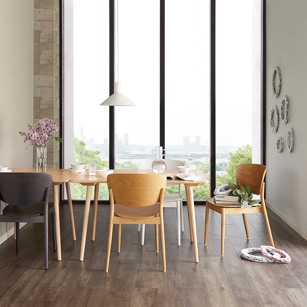 100年以上の歴史あるチェコTON社からベーシックなダイニングテーブル。シンプルなデザインだから、どんなチェアともセットしやすいのです。ダイニングルームの色は食欲と結びついているので、家具の色選びもとても大事。テーブルとチェアを違う色の組み合わせに挑戦するのも、楽しいダイニングルーム作りのポイントです。長く使えるベーシックなデザインだから、どんなスタイルのインテリアにも合わせやすいのも嬉しい。世界中から愛さ続ける曲げ木細工の老舗「TON(トン)社」1858年、世界的家具メーカー「トーネット社」の源流となる曲げ木工場をスタートさせた、ドイツ生まれの家具職人「ミヒャエル・トーネット」。ミヒャエルが発明した、硬い天然木を蒸して柔らかくしカーブをつけるという画期的な「曲げ木技法」により、椅子デザインの美しさと量産化が大幅に進化し、バウハウスをはじめとした後世のデザインと家具の工業化に大きな影響を与えました。チェコのビストリッチェ工場は1953年には社名を現在の「TON(曲げ木家具工場の略語)」にあらため、150年以上変わらない伝統的で上質な曲げ木家具メーカーとして、年間50万台以上の家具を製造。「TON」の製品は、軽く丈夫で値段も手頃なため、世界中のカフェやレストランなどで愛用されています。ハウススタイリングは、TON(トン)の正規販売店ですディノス・ハウススタイリングは、チェコのTON(トン)社の製品の正規販売店です。並行輸入品やリプロダクト、ジェネリックと称するコピー商品は販売しておりません。