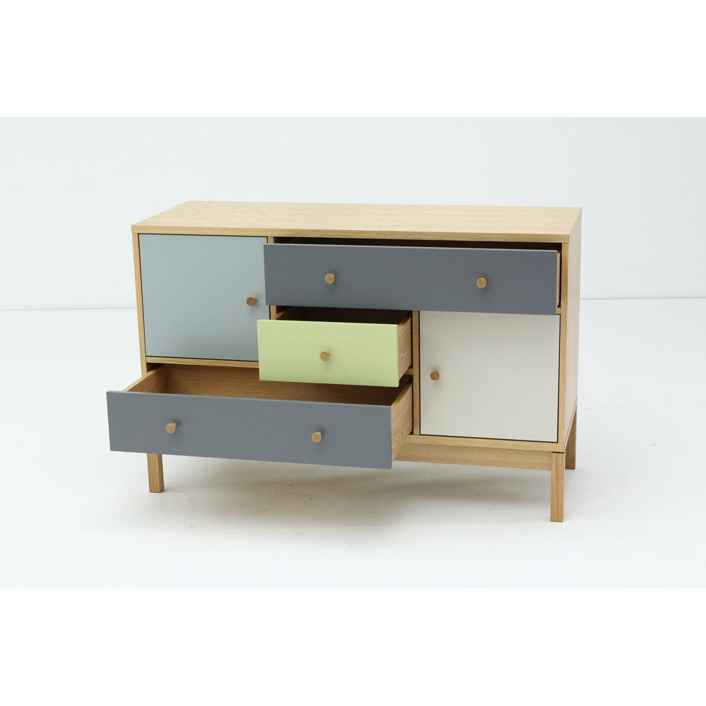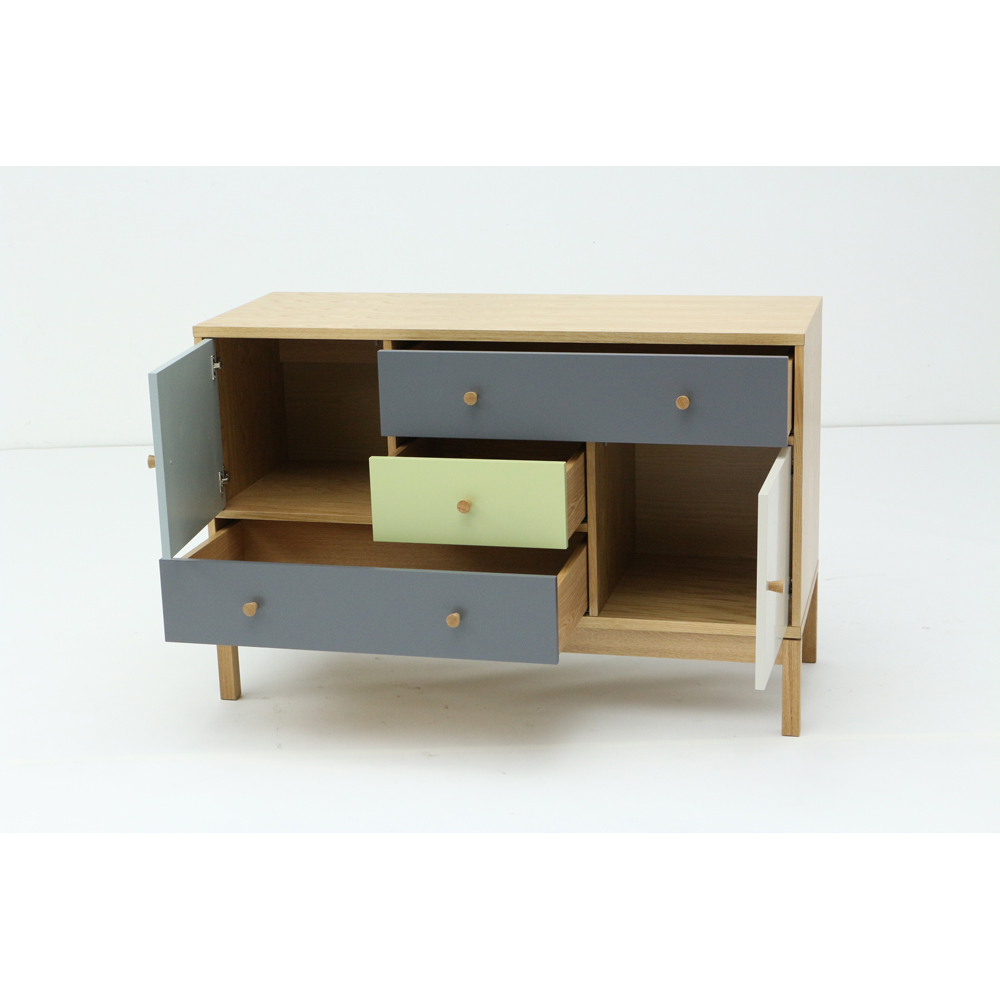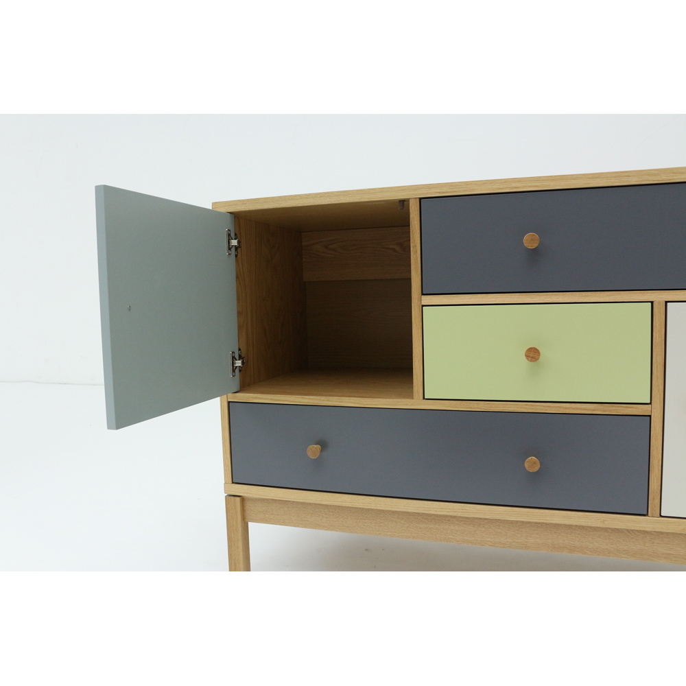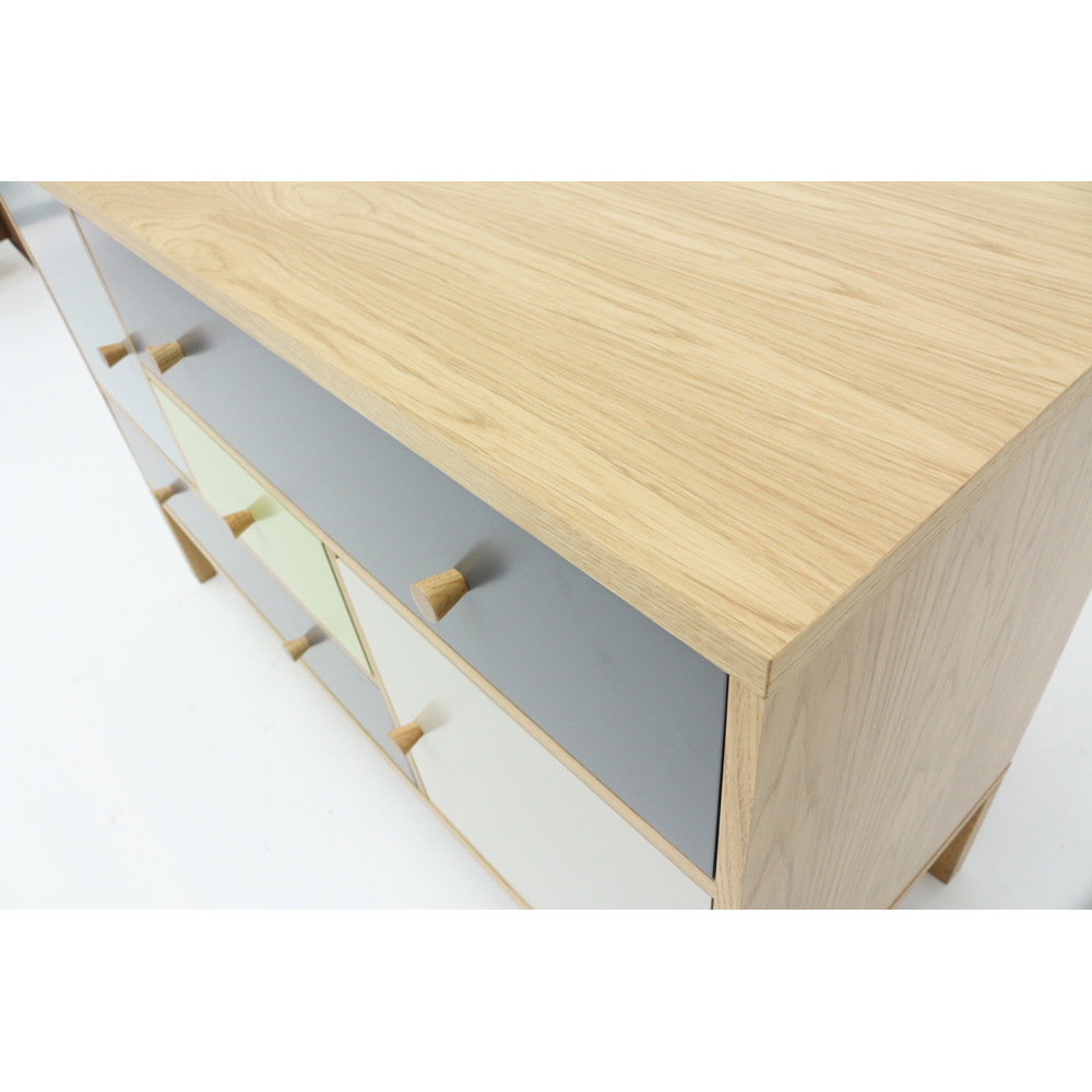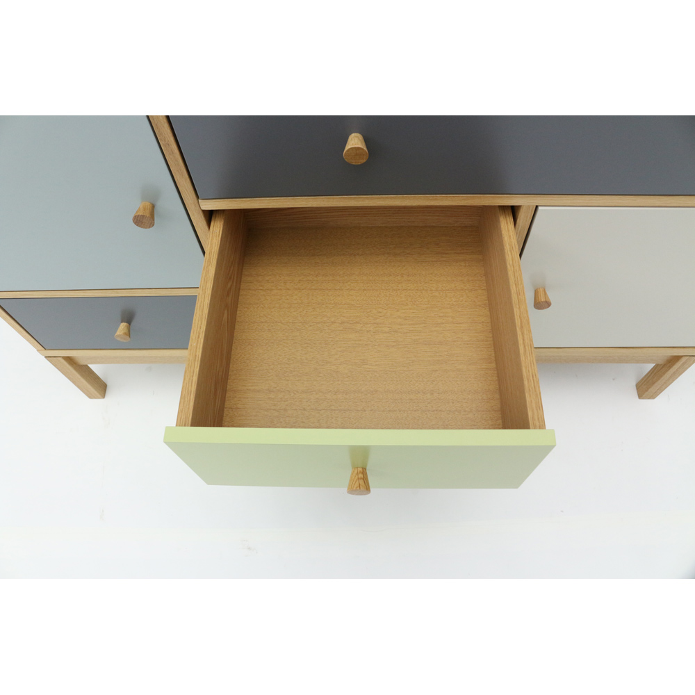 まるでアートのような北欧インテリア。どこにあっても「絵」になる、軽やかで美しい存在感です。木の質感を活かした家具を生み出すデザイナー、レオナルド・ファイファーによるデザインで、日本国内ではディノスだけの取り扱い商品です。ヨーロッパのインテリア雑誌から飛び出してきたような端正で楽しいデザイン●ヨーロピアンデザインの引き出しキャビネット。 カラフルな色使いがキュートな北欧インテリアファニチャーです。●お部屋のどこに置いても目を惹くチェストシリーズは、 オークの木目とカラーの組み合わせが新鮮。 リビングボードやサイドボードはもちろん、食器棚としてもおすすめです。●木の質感を活かした家具を生み出すデザイナー、 レオナルド・ファイファーによるデザインです。●引き出しにはblumブルム社のセルフクローズレールを使用しているので開閉もスムーズです。●お掃除ロボットにも対応可能な脚部高さ14cmです。WOODMAN(ウッドマン)1999年創立の東欧エストニアの家具メーカーで、その歴史はオフィス用の小さな木製品の生産からスタート。その後、ヨーロッパで数々のインテリアアワードを受賞するまでに成長しました。さらに、すべての木材が計画植林地から得られていることで、エコ企業の証しであるFCS認証も獲得しています。2011年パリでの展示会でハウススタイリングと出会い、日本で初めて販売する運びに。日本国内ではハウススタイリングだけのお取り扱いです。LeonhardPfeifer(レオナルド・ファイファー)イギリスに拠点を置くデザイナーで、数々のデザインアワードを受賞。家具の修理職人だった父の影響を受け、「木」の素材感を重視しながら都会的な家具をデザインしています。