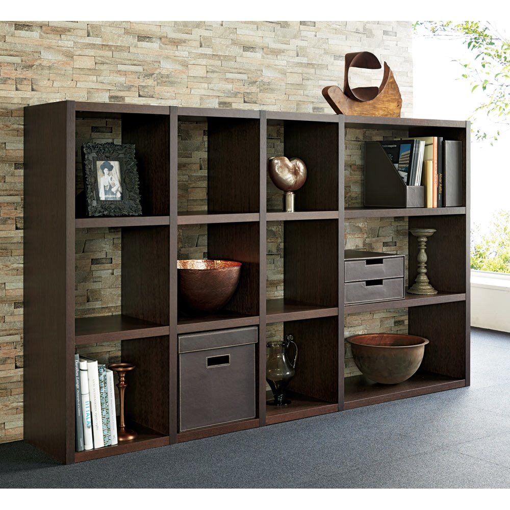 ダークブラウン。本棚として、ディスプレイシェルフとして。大型のサイドボードのように、天板上も利用してデコレーションを楽しんでください。